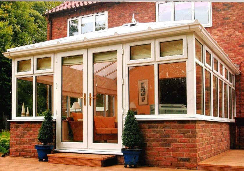 Muitas vezes há extensões para casas particulares com vidros, armações de policarbonato.