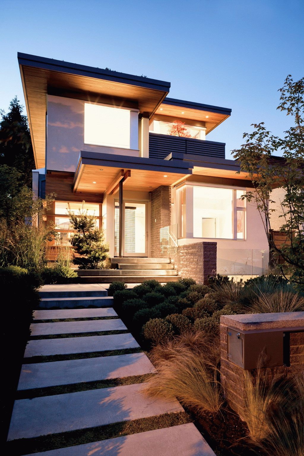 - A viseira arqueada tem um efeito especial, suaviza a forma da fachada, torna a casa visualmente mais confortável.