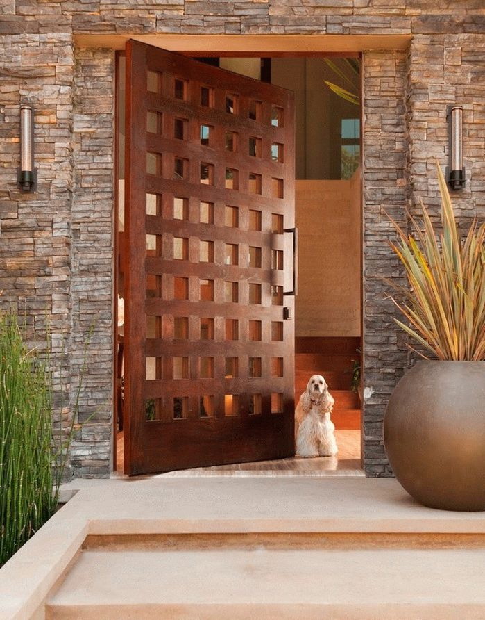 Se você gosta de luxo, aristocracia, então sua opção é um forjamento artístico, esculturas perto da entrada, uma pequena fonte. Vai ficar ótimo artificial lareira, dando calor, conforto para a família descansar ao ar livre.