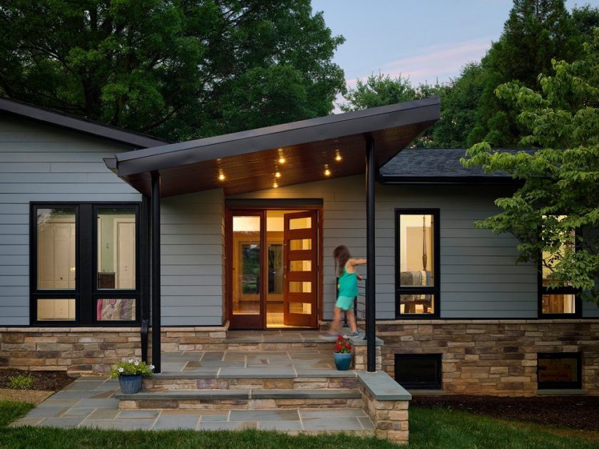 Os donos subestimam o pórtico da casa e, em vão, pode ser transformado significativamente com as próprias mãos, como na foto.