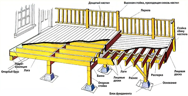 - Suspenso - este tipo é construído no caso de haver um porão na casa, e também se a área perto da casa exigir tal necessidade; a estrutura lembra uma sacada.
