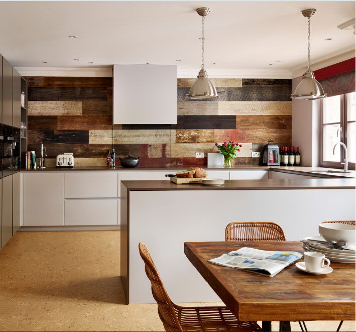 Apesar do fato de que a árvore é um material bastante durável, ainda há lugares próximos aos quais é melhor não colocá-la. Por exemplo, acima do fogão é melhor usar telhasemelhante a uma árvore, e acima do tampo da mesa, onde nada ameaça a madeira, use-a corajosamente. Caso contrário, durante a cozedura activa, o painel pode não só perder a sua aparência e se deformar com o vapor e a alta temperatura, como também incendiar-se.