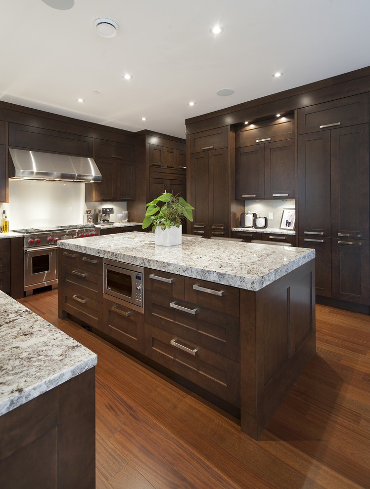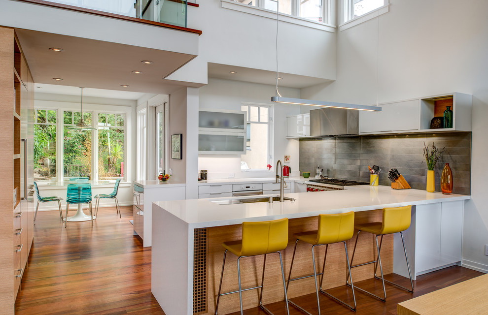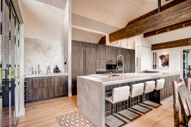 Mais leve, mais espaçosa e aconchegante, a cozinha será feita por madeiras mais claras, por isso, se você quiser obter esse efeito, escolha-as. Estilos de alta tecnologia e modernos podem ser combinados com cores escuras que enfatizam a elegância e o alto preço do design.