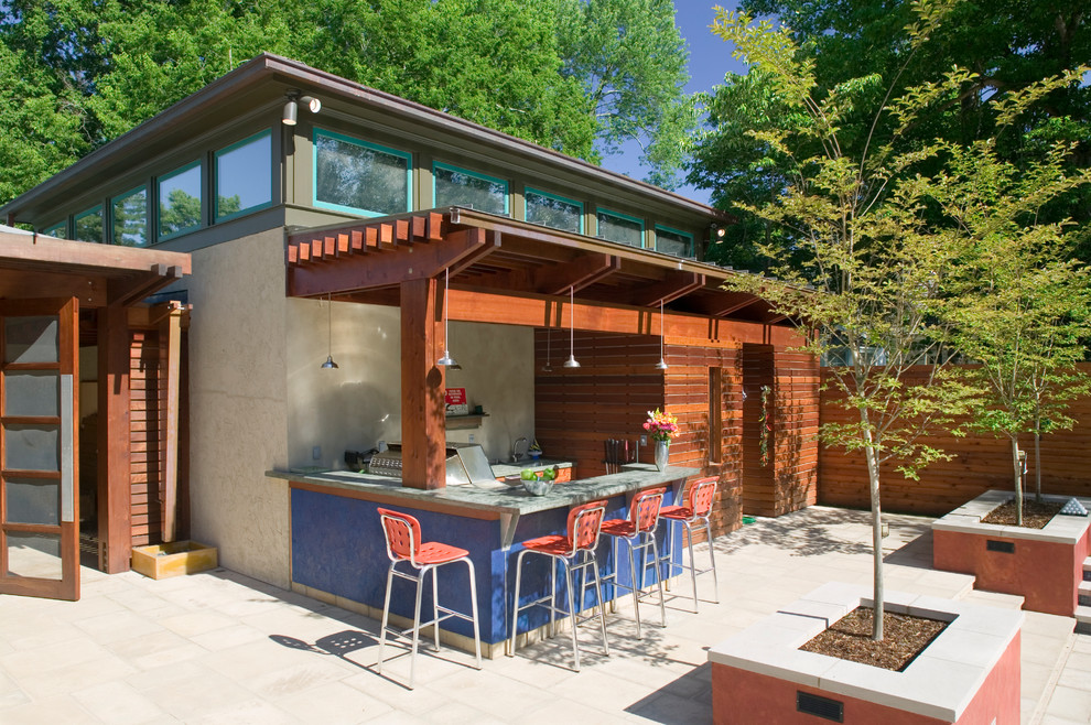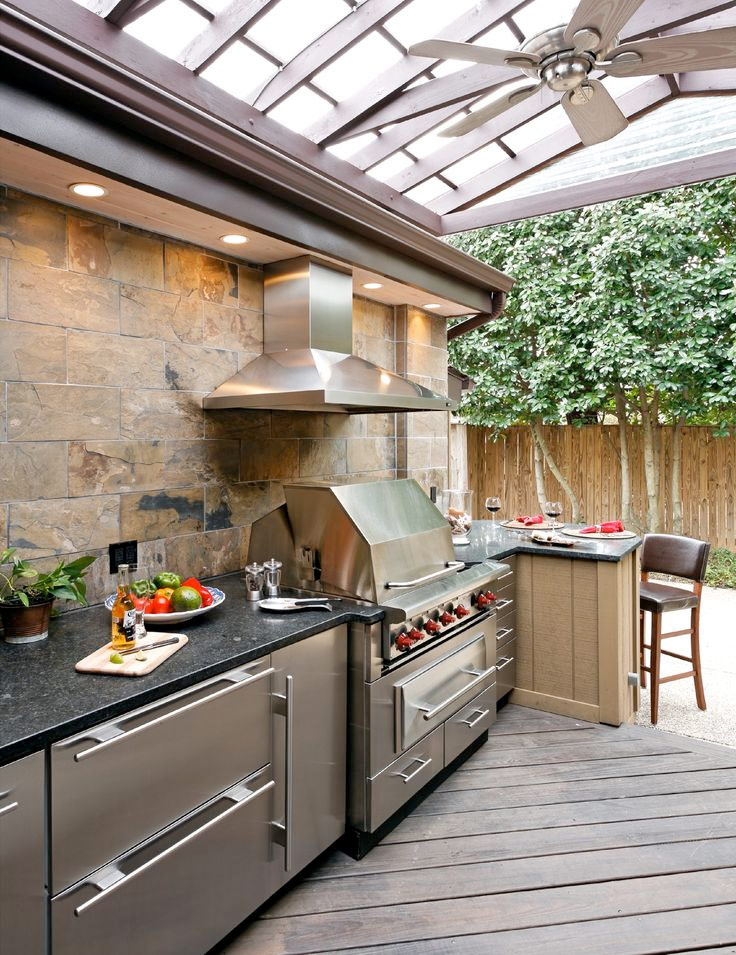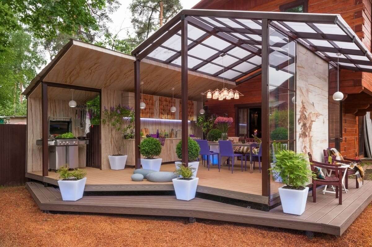 Cozinhas abertas e semi-abertas são uma verdadeira bênção no calor do verão, especialmente nas regiões do sul. Neles, você pode com segurança e prazer cozinhar, enrolar, cozinhar, fritar, ensopado, sem sofrer de abafamento. Mas você precisa seguir regras simples.