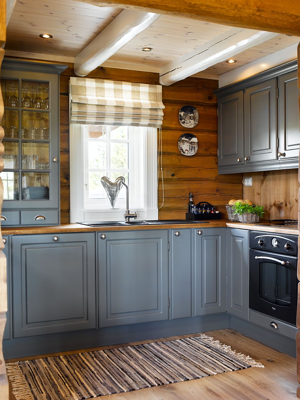 - Cores. As cores primárias não devem ser mais do que duas. Ou seja, se a pedra no chão for preta e as paredes e o teto forem de madeira, a tentativa de colocar uma mesa vermelha na cozinha não será bem-sucedida. Você pode pegar uma das cores primárias ou sua sombra - a tabela preto ou sombra de madeira clara. Os acentos também devem ser no máximo dois. Então, um vaso azul pode ficar em uma mesa de madeira clara, mas se houver um prato azul, amarelo e branco ao redor, não vai mais parecer. É melhor que o resto dos pratos também tenham tons de azul.