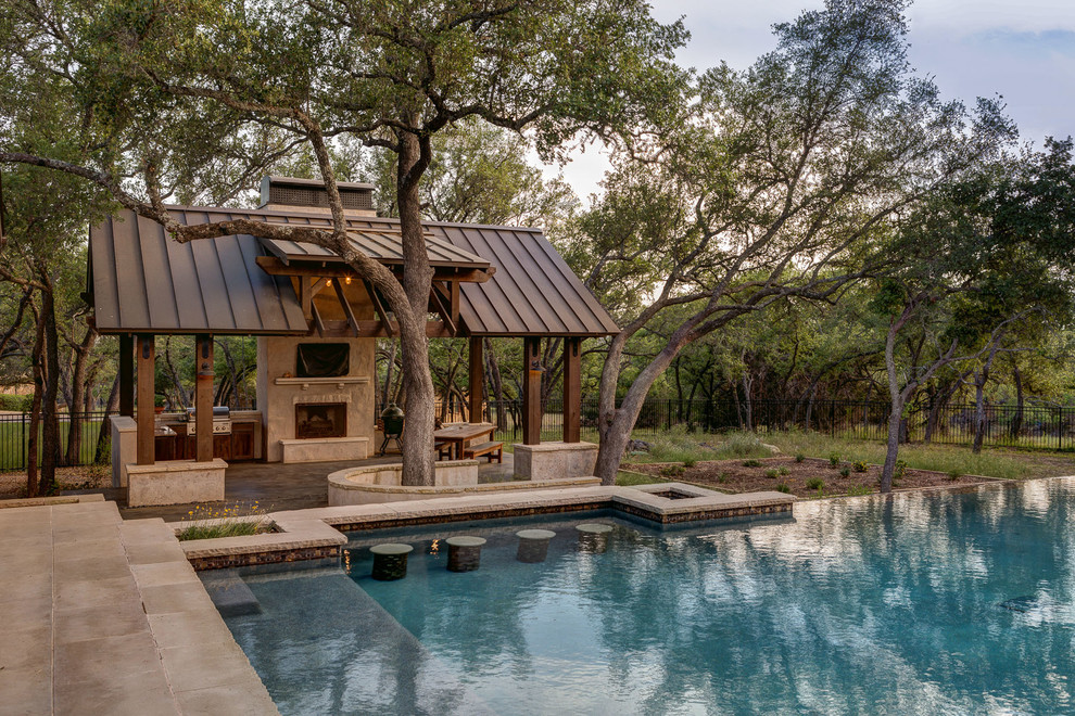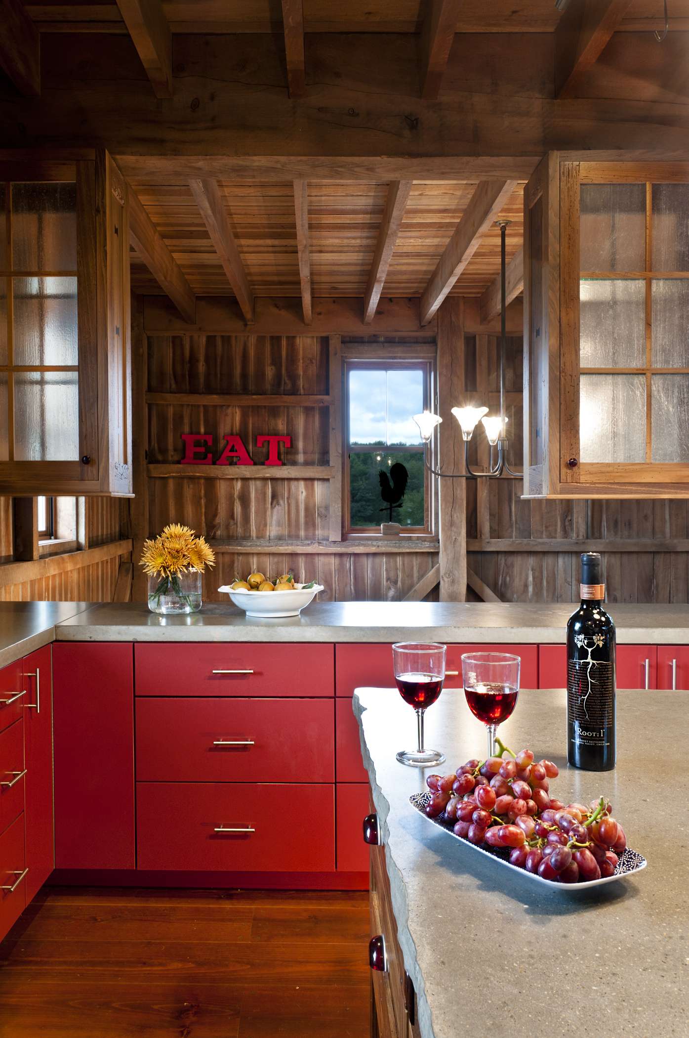 - balcão de bar — alto, estreito, permite transformar uma cozinha de campo comum em uma espécie de barra real;