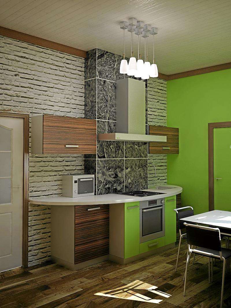 - do tijolos - para uma cozinha aberta é uma excelente solução, uma vez que os tijolos não têm medo de qualquer influência externa e têm boa aparência.