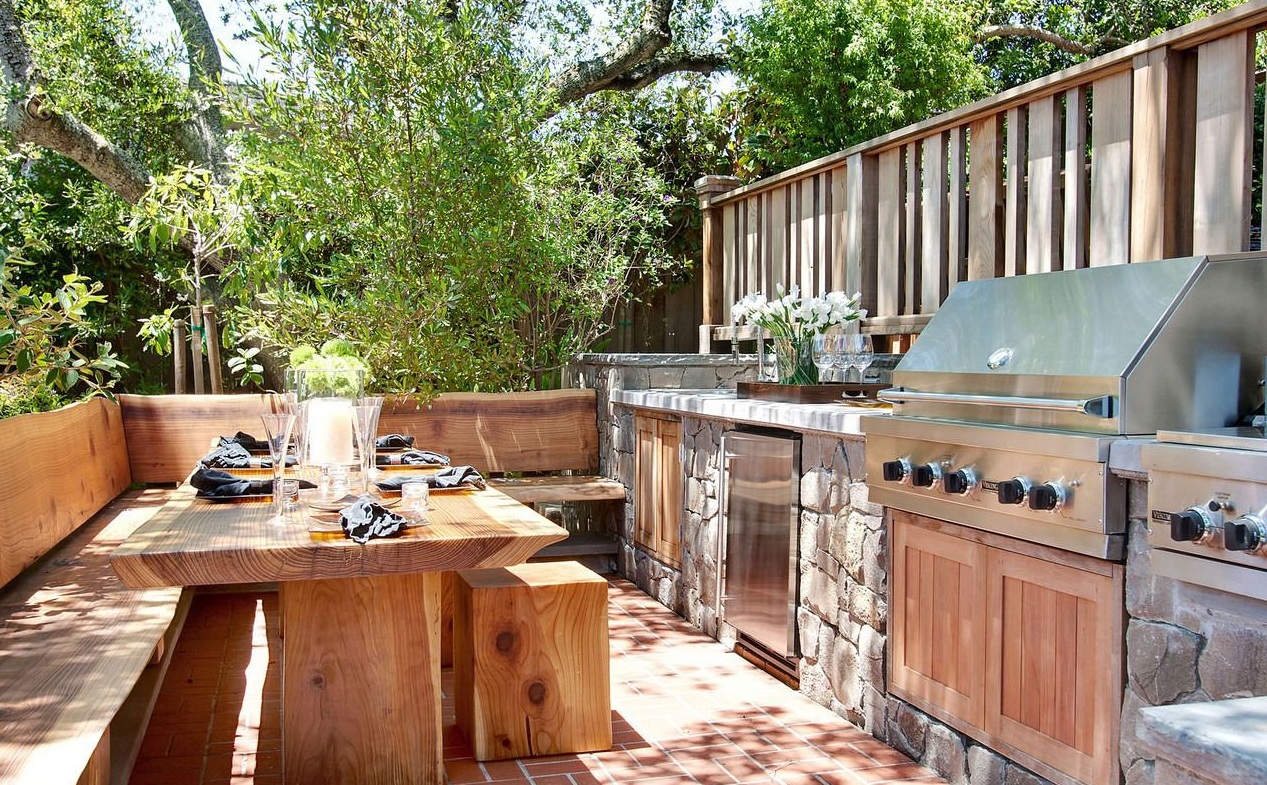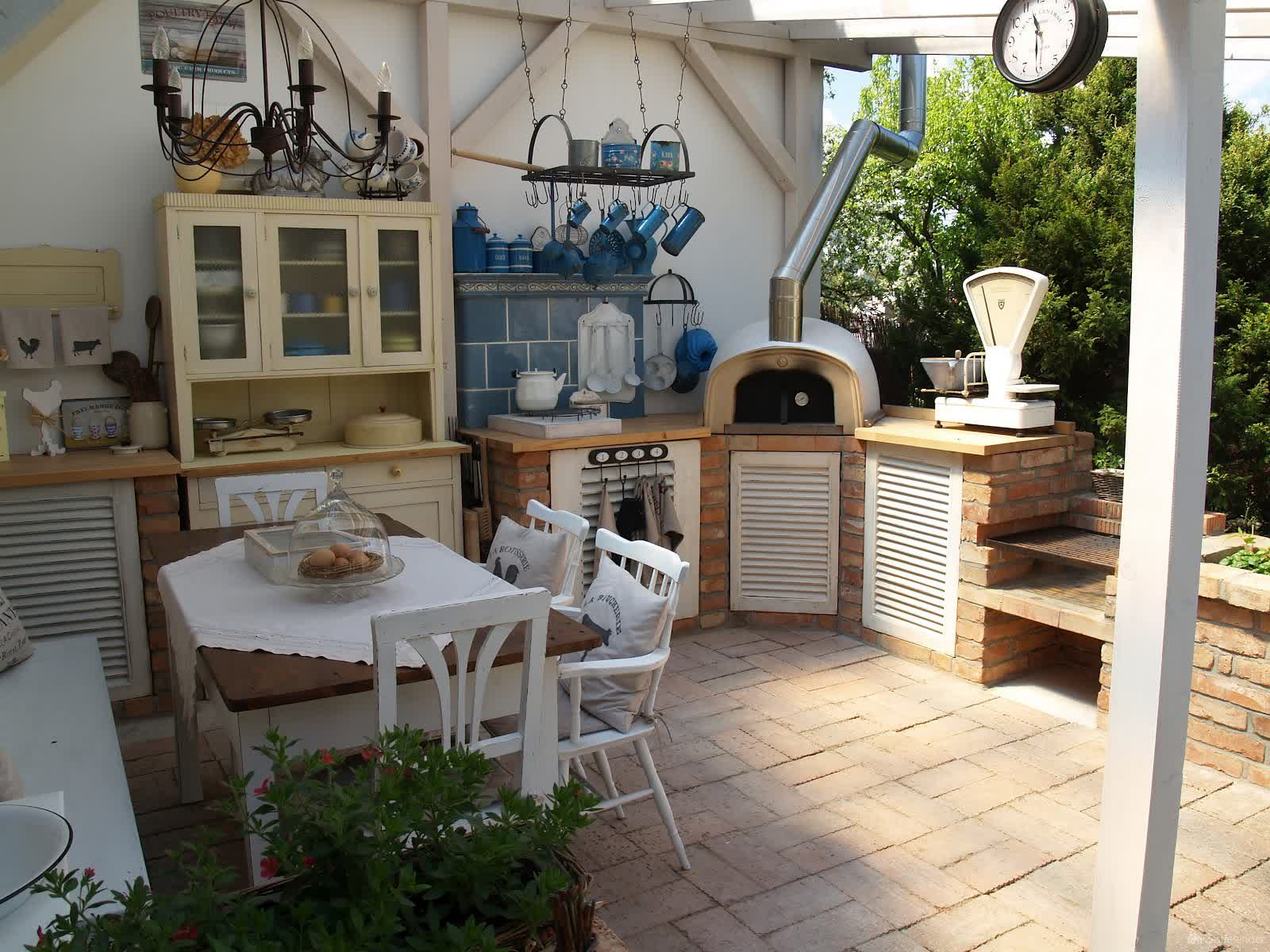 - Aberto. Mais como não a cozinha, e o caramanchão, que fica grelha ou elétrico telhae com isso o mais simples mobília. No calor, é um prazer cozinhar, porque o calor vai para fora, o que significa que não é abafado no fogão.