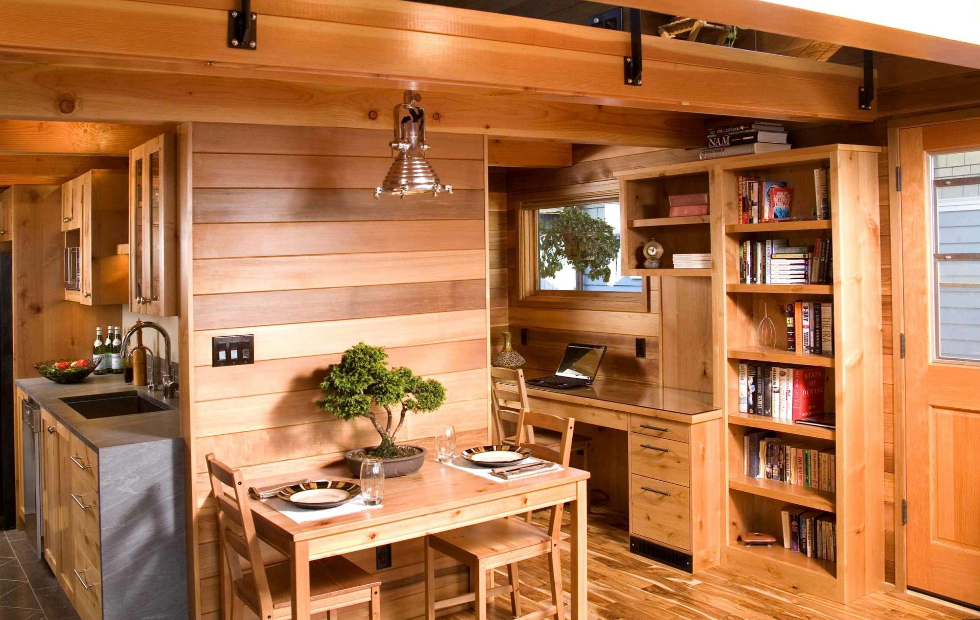 - Nas paredes, você pode consertar telhas, colá-las com papel de parede lavável, deixá-las de madeira, se toda a casa for feita de madeira ou tijolo, se for de tijolo. O principal é que as telhas, papel de parede e madeira eram de alta qualidade e poderiam resistir a ameaças externas.