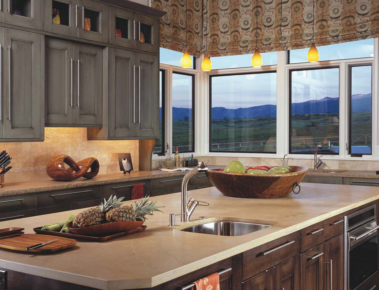 - Música country. A mesa é sólida, de uma árvore, cadeiras também. Certifique-se de tapete trançado no chão, cortinas nas janelas, geralmente um monte de têxteis. As cores são saturadas, naturais.