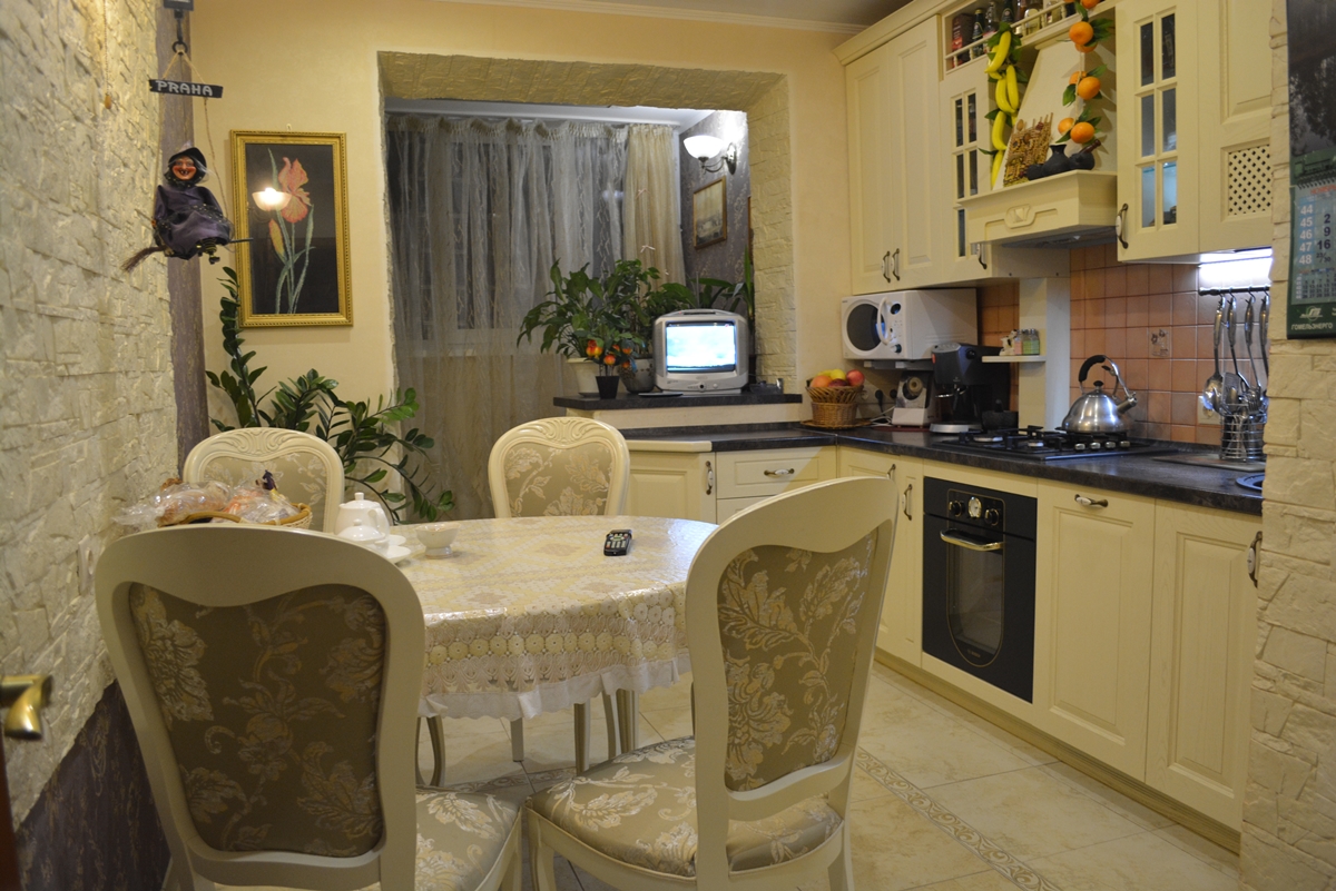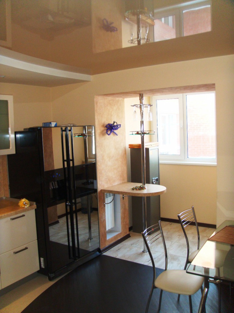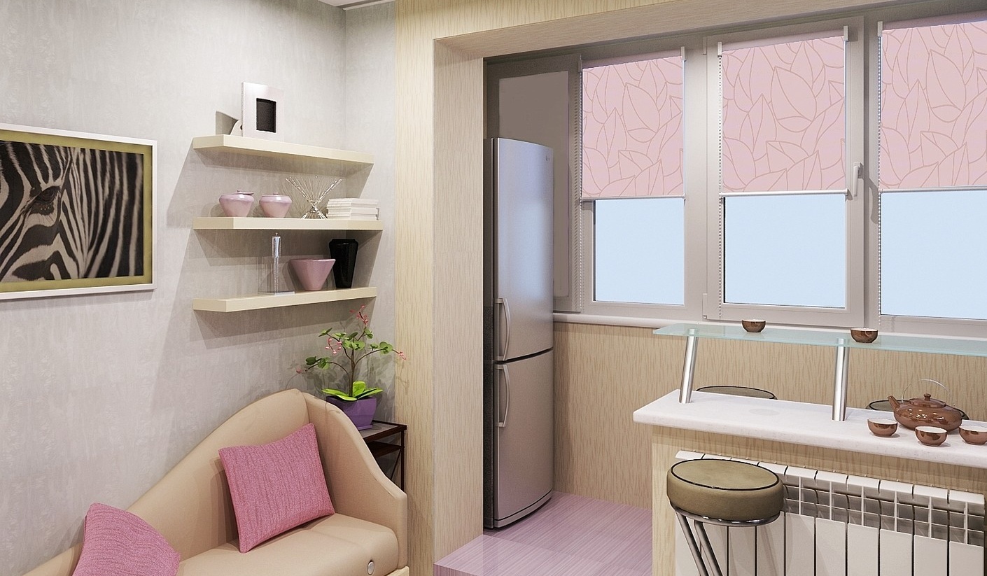 E então o suficiente para aquecer, envernizar a galeria e destruir a parede, e depois fazer reparos cosméticos. Como resultado, a cozinha será mais do que alguns metros quadrados e você pode usá-los como quiser. Até mesmo realize comunicações e faça-as funcionar.