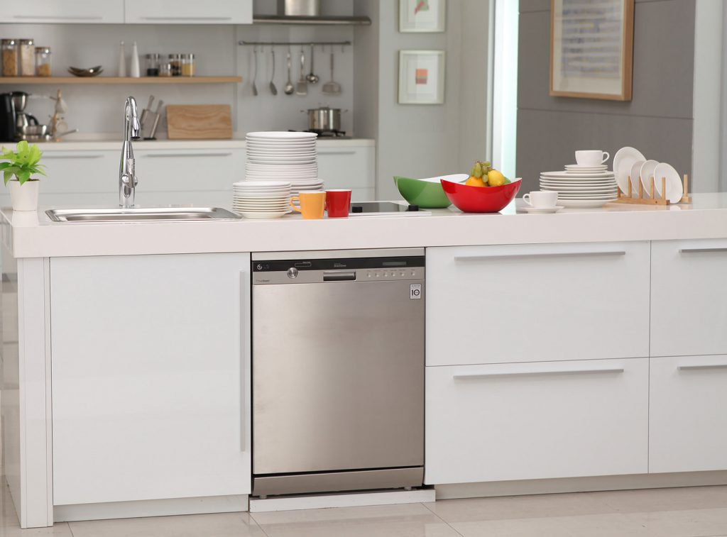 - Máquina de lavar loiça. Elimina o desagradável dever de lavar pratos, é construído na ilha para que seja fácil de descarregar em todos os pratos, copos, talheres após as refeições. Não vai caber em estilos clássicos, mas vai ficar ótimo em oi-tech.