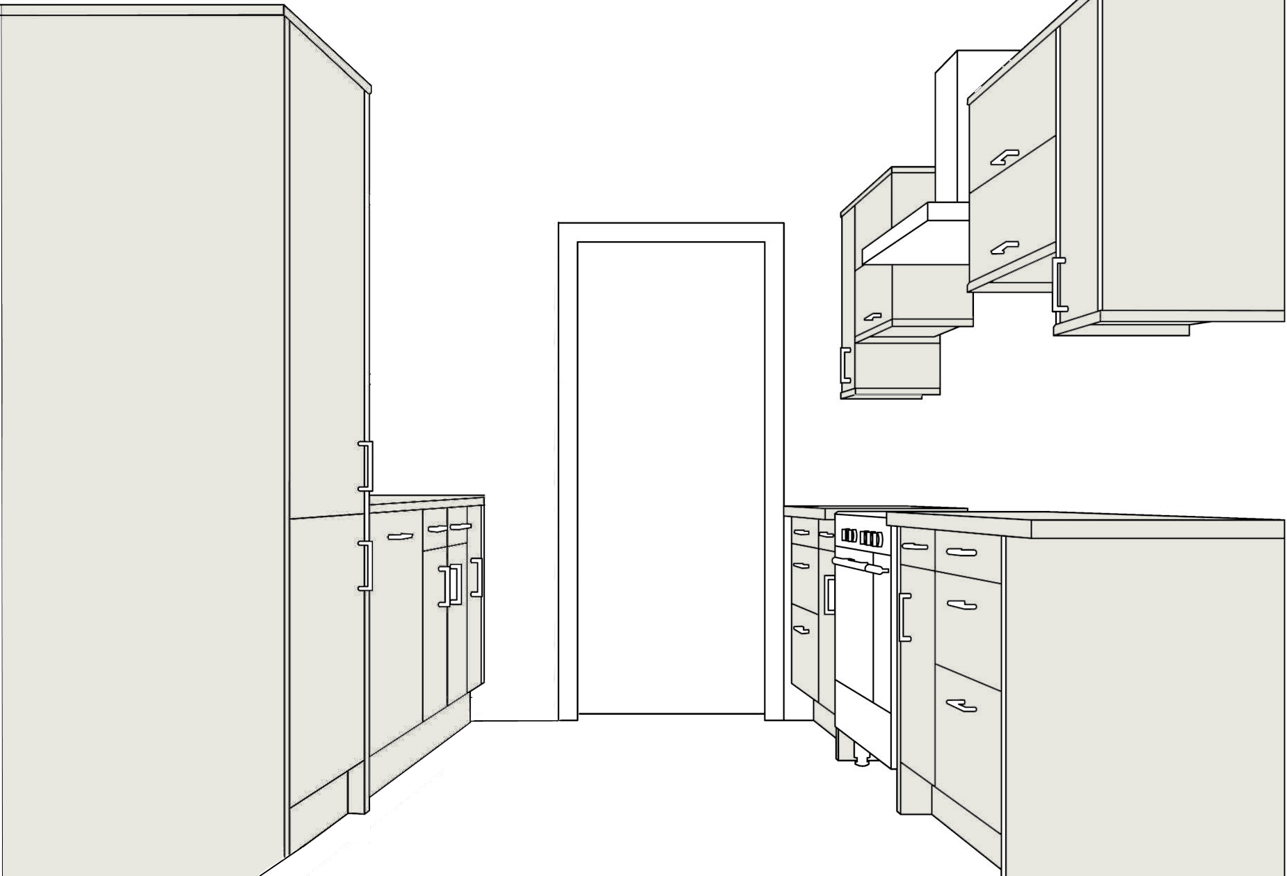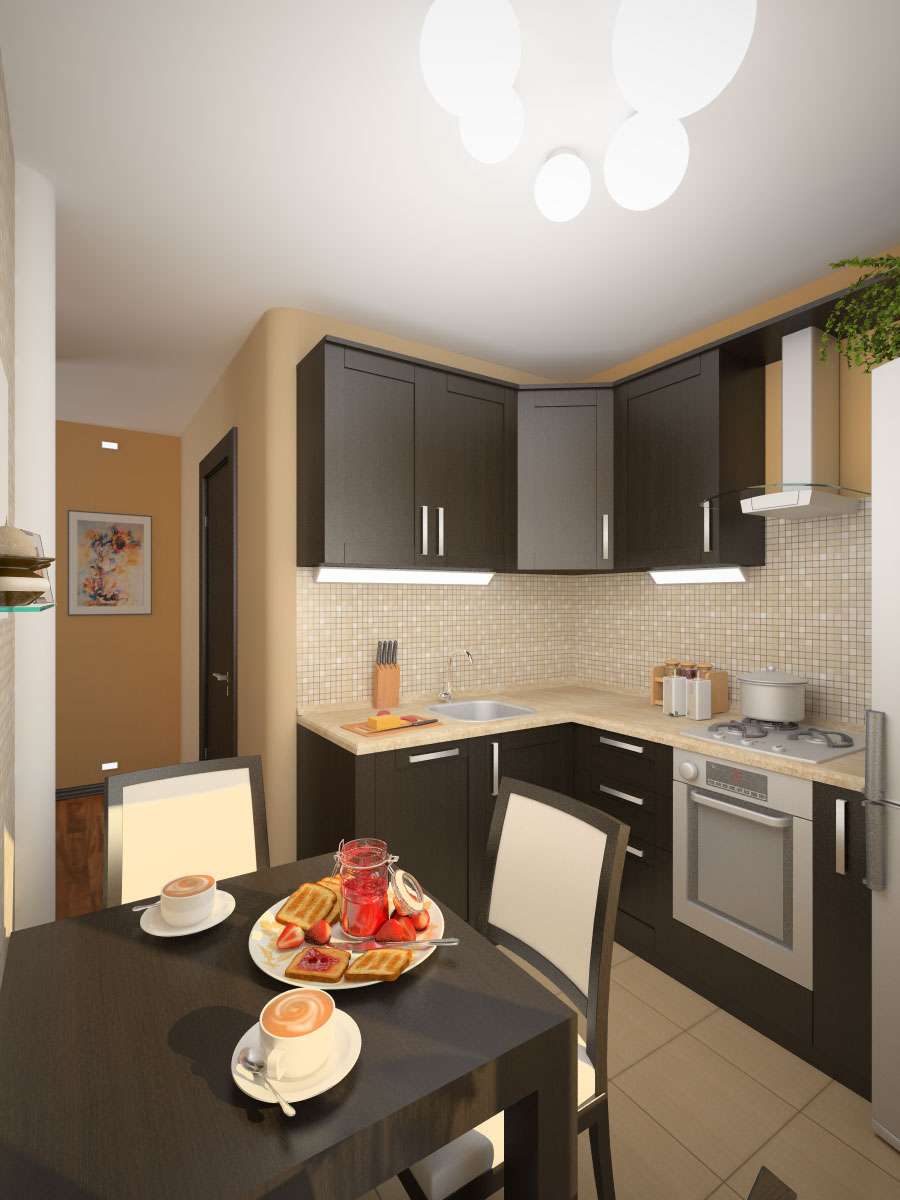 - A letra "P". Pode não dar certo - afinal, essa solução precisa de espaço. Somente se a cozinha for quadrada, será bastante confortável.