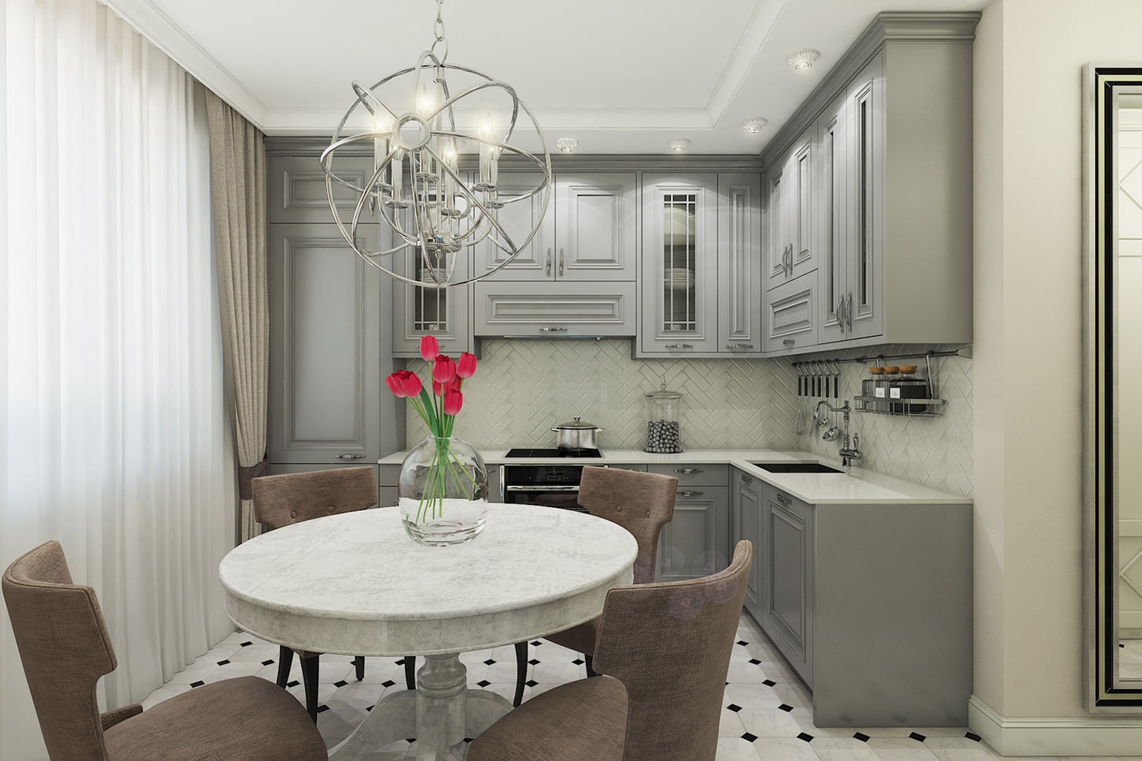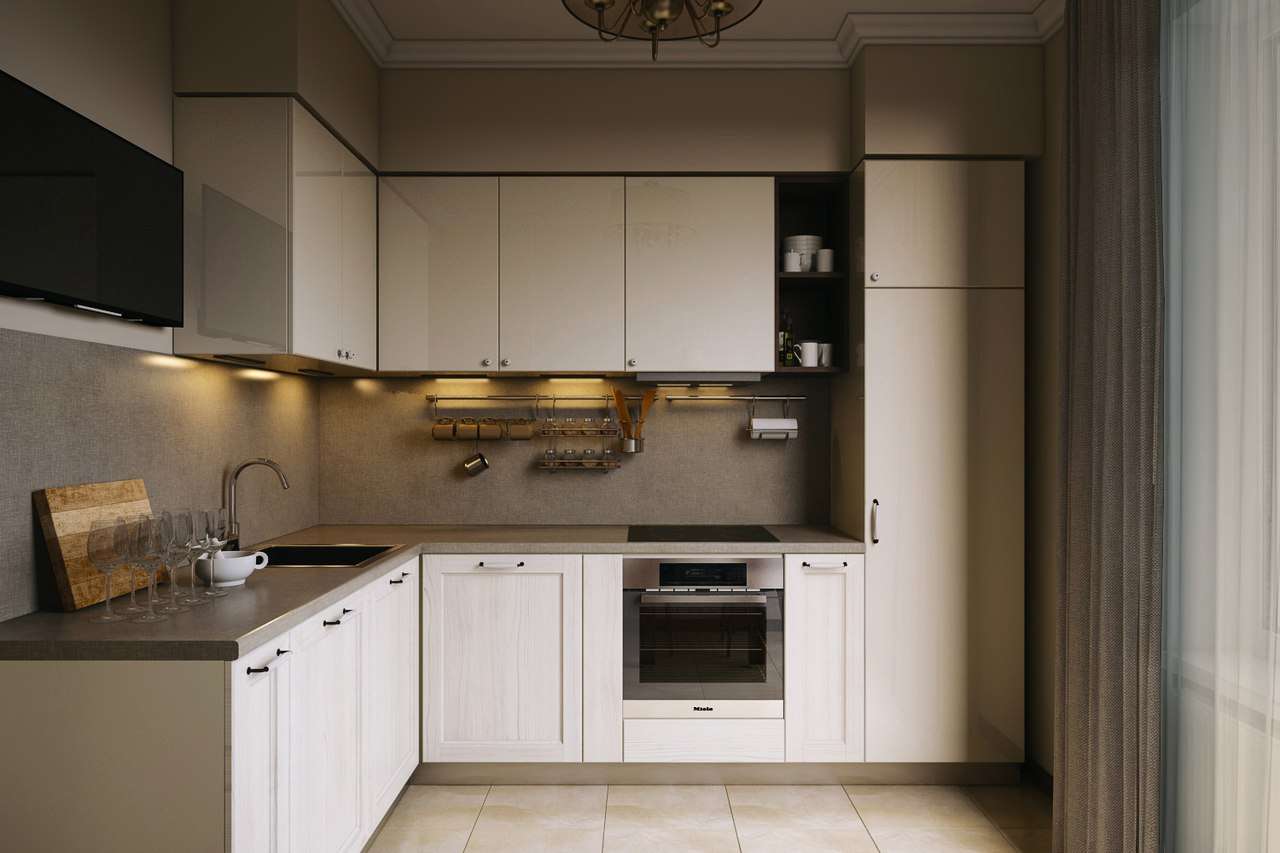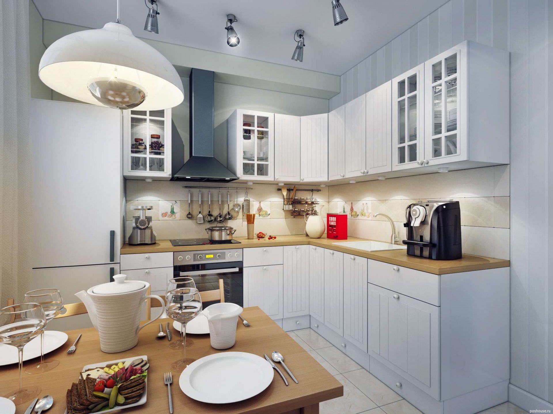 Naturalmente, não é necessário projetar a cozinha em um estilo específico, de modo que pareça com sua ilustração. Você pode aplicar fantasia e construir algo próprio, mas só ficará bem se seguir as regras mais simples: