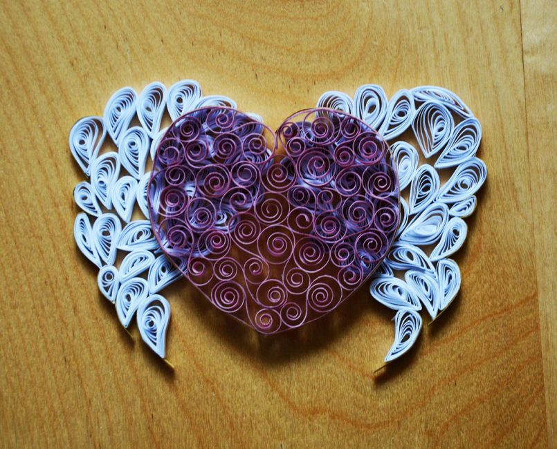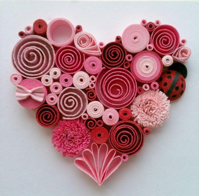 Isso é feito da mesma maneira que os "chifres". Apenas as direções em que as espirais entram em mudança. E a junção é presa com os dedos. Este tipo de produto é ideal para decorar um presente para sua namorada ou cônjuge.