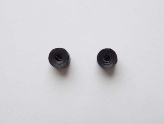 - Novamente, eu transformo a fita criada em uma "espiral apertada". Pela primeira vez, precisarei de duas dessas espirais. Você provavelmente já adivinhou porque eu precisava de pares de formas de quilling. Claro, porque brincos de senhoras devem ser dois pedaços! Agora eu espalhei os formulários preparados no modelo já criado e colei-os juntos.
