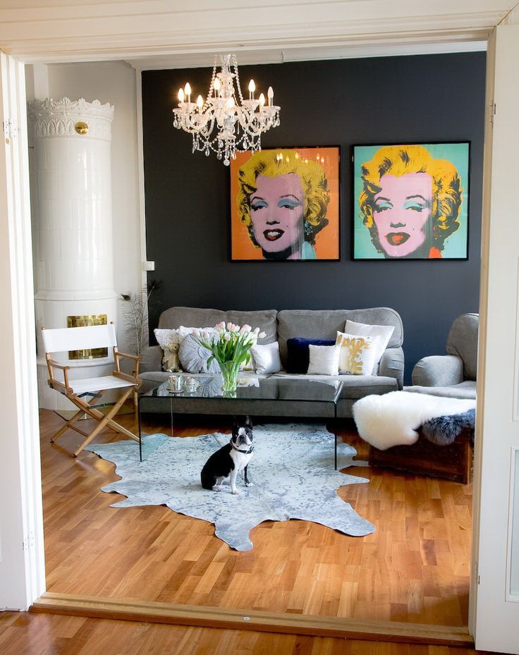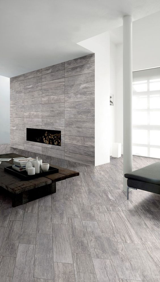 A sala onde o laminado cinza se torna uma continuação de papel de parede, painéis ou elementos de decoração ficará ótima.