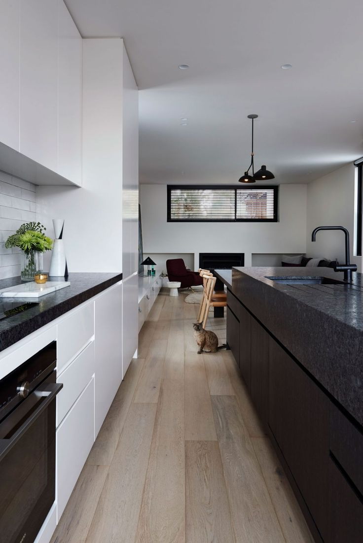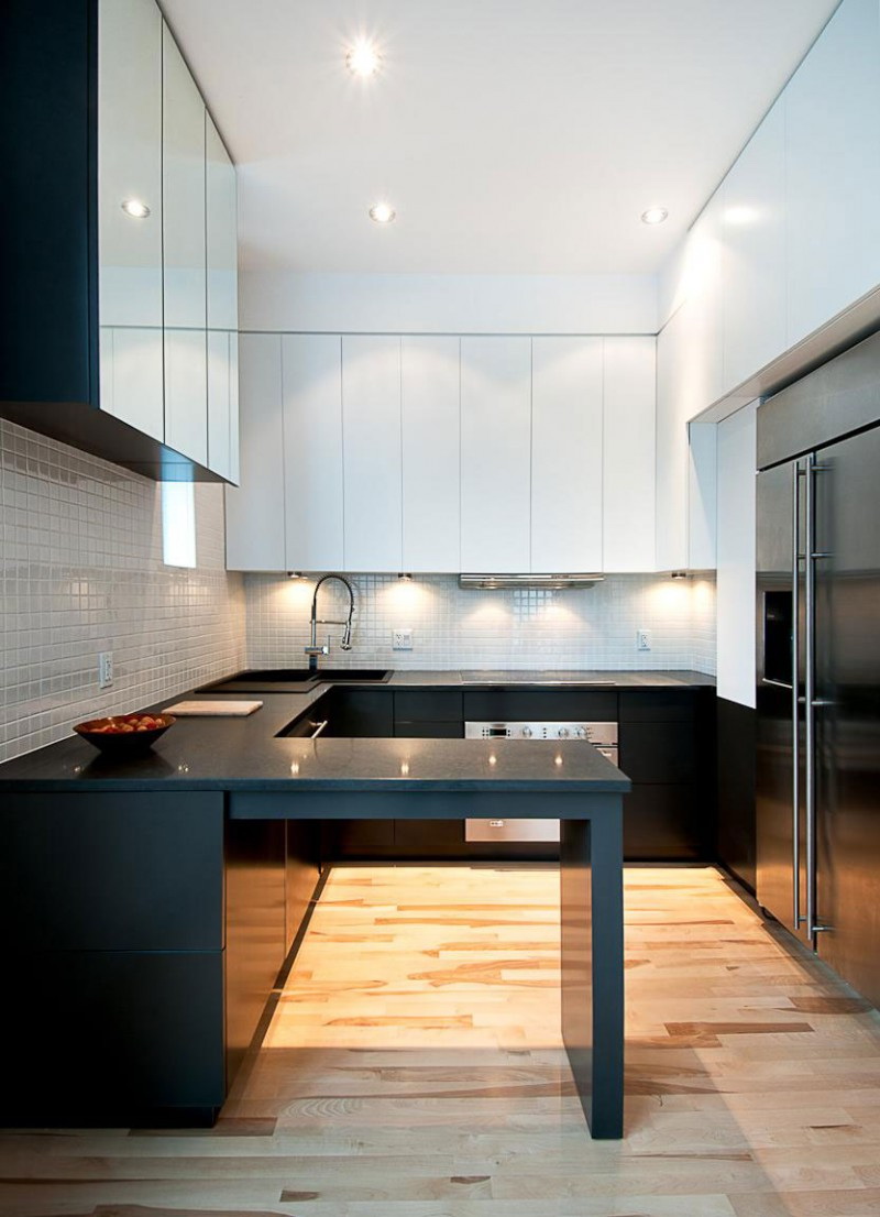 No espaço da cozinha, o laminado é frequentemente separado pelo chamado "avental".