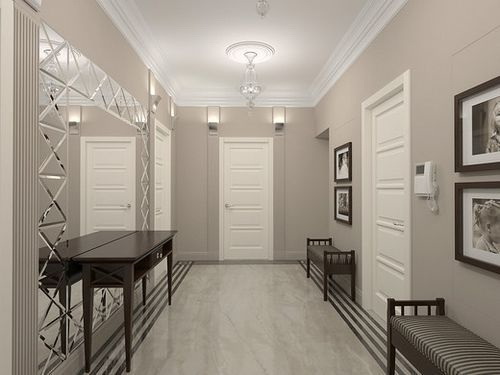 O corredor é geralmente um quarto muito pequeno.Laminado no corredor, encontra-se na foto, onde a execução do projeto, desenvolvido no princípio do contraste. O piso, coberto com laminado escuro, fica adjacente às paredes leves, formando luz e vice-versa.