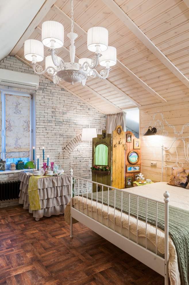 Portanto, se você trabalha com uma superfície tão complexa, você precisará cuidar da cor das paredes, teto, acessórios e móveis.