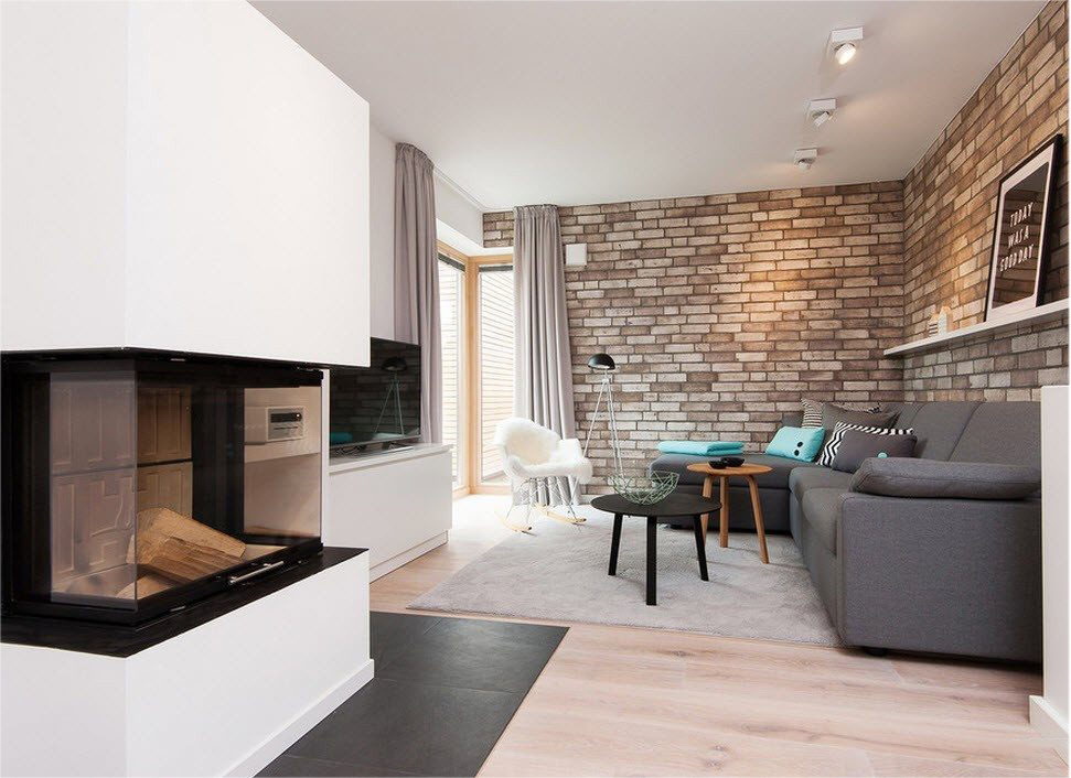 Assim, uma solução cinza claro adicionará luz, frio e austeridade ao estilo da sala. Para fazer um contraste e criar um tipo de dinâmica, você deve escolher um revestimento cinza escuro.
