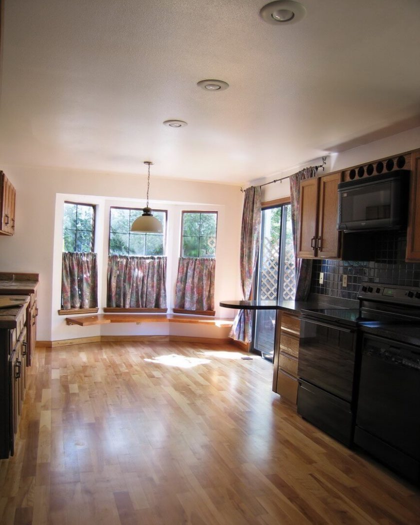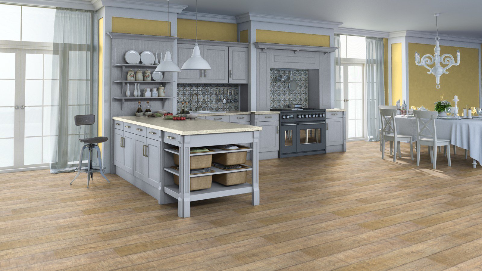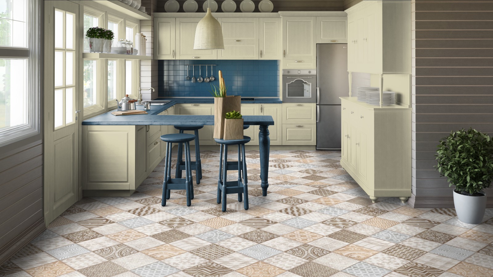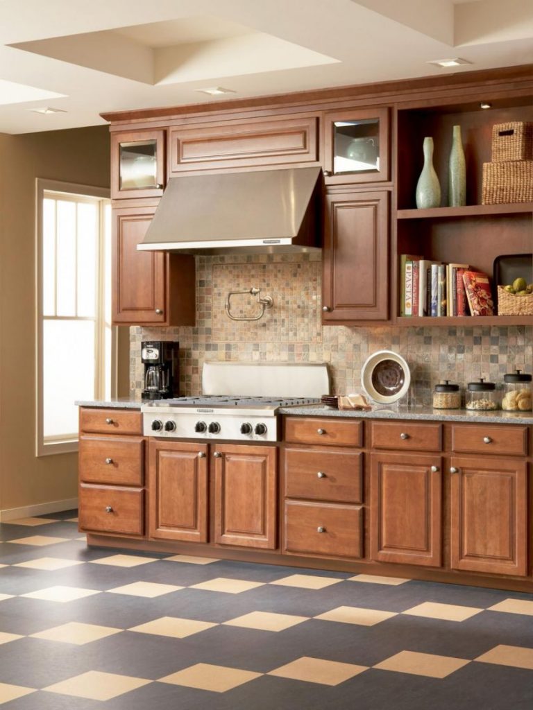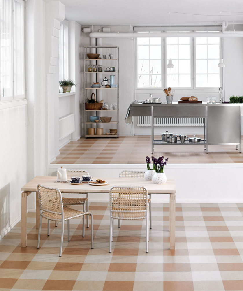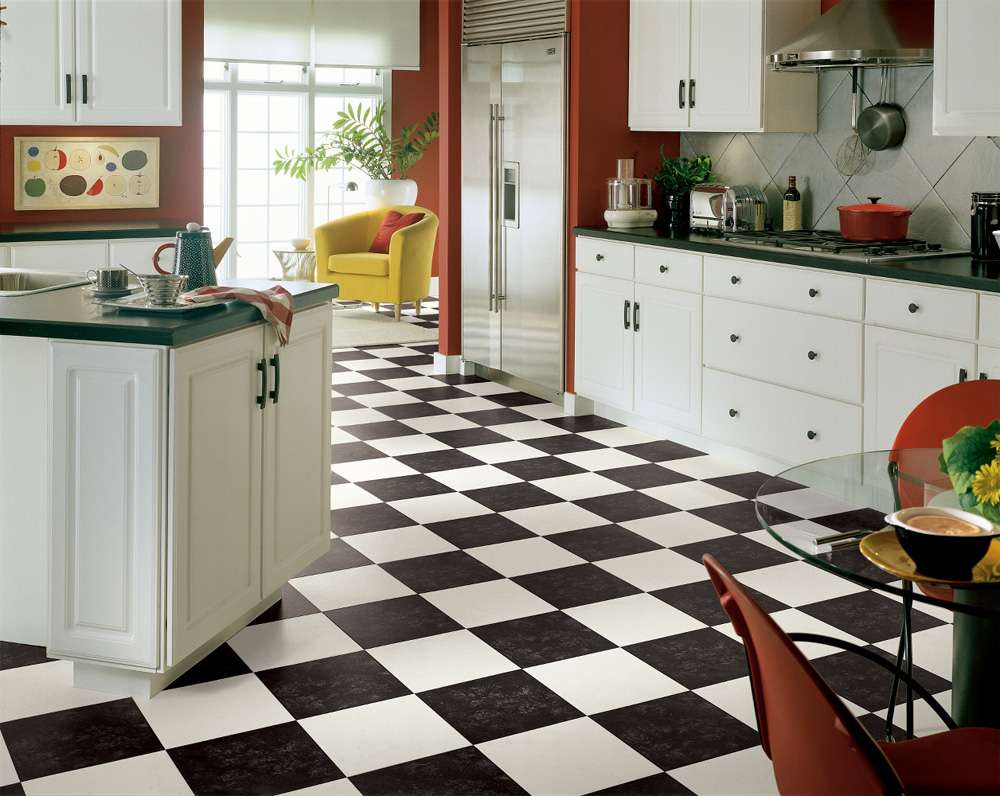 É muito importante escolher o revestimento adequado para os quartos que exijam condições especiais. Um destes quartos é uma cozinha. Aqui é necessário selecionar um material muito resistente ao desgaste e à prova d'água.. Na cozinha, todas as superfícies estão expostas a água e gordura. O linóleo é o melhor para este quarto.