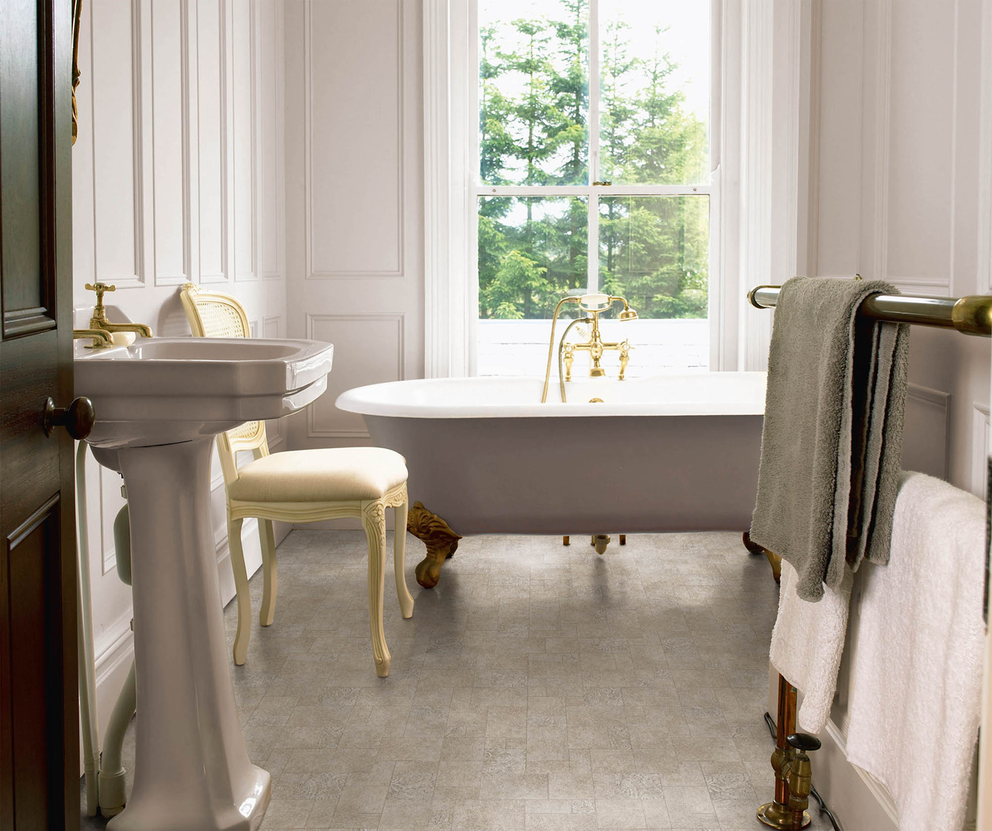 - para cozinha e banheiro vale a pena escolher linóleo de PVC. Tem propriedades resistentes à umidade;