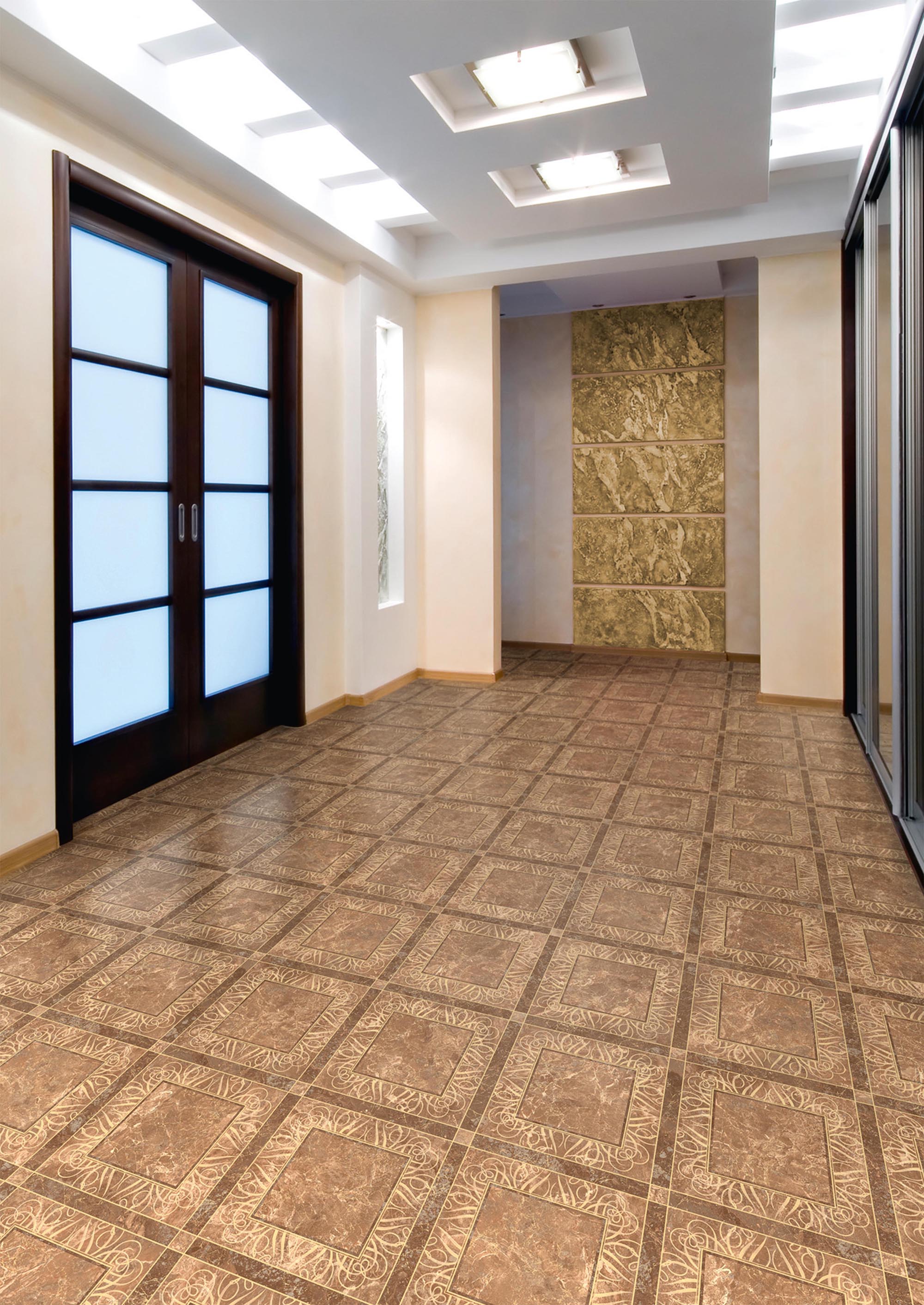- Hall e cozinha. Aqui o maior fardo no chão. As pessoas podem andar em sapatos ao ar livre, tantas vezes há vestígios de umidade e sujeira. Algo deve ser derramado ou despertado na cozinha. Com base nisso, para estes quartos é melhor comprar linóleo semi-comercial de 3 mm de espessura. Também para estas premissas você precisa escolher a tela com propriedades antiderrapantes. Eles consistem em uma superfície relevo em relevo, que é facilmente determinada se você passar a mão sobre a superfície.