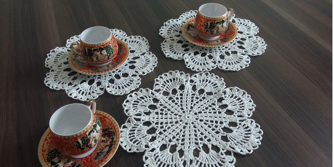 Os fãs podem trabalhar com uma agulha de crochê para fazer guardanapos de mesa a céu aberto feitos de fios de algodão. Mestres da mais alta classe podem fazer tricô Toalhas de mesa ou capas em soft mobília.