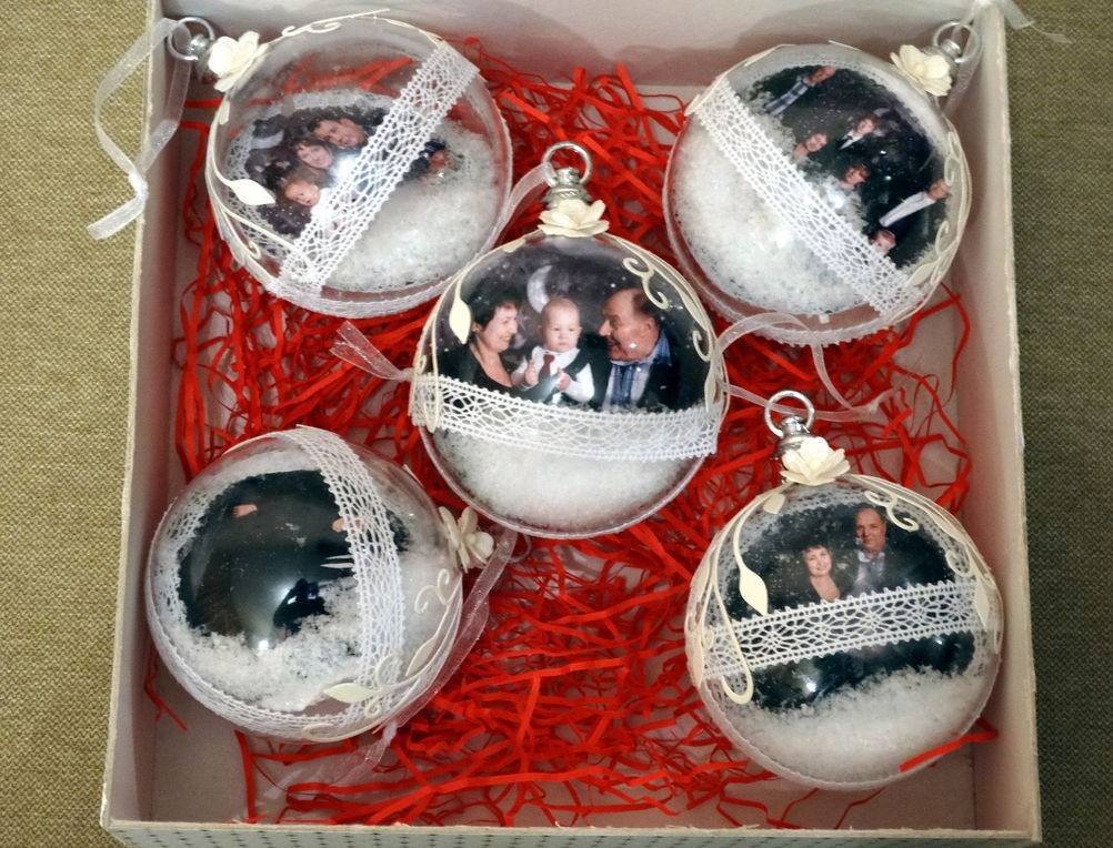 Toda a família terá o prazer de receber bolas de Natal com a imagem de fotos da família. Idealmente, cada membro da família terá sua própria foto na bola.