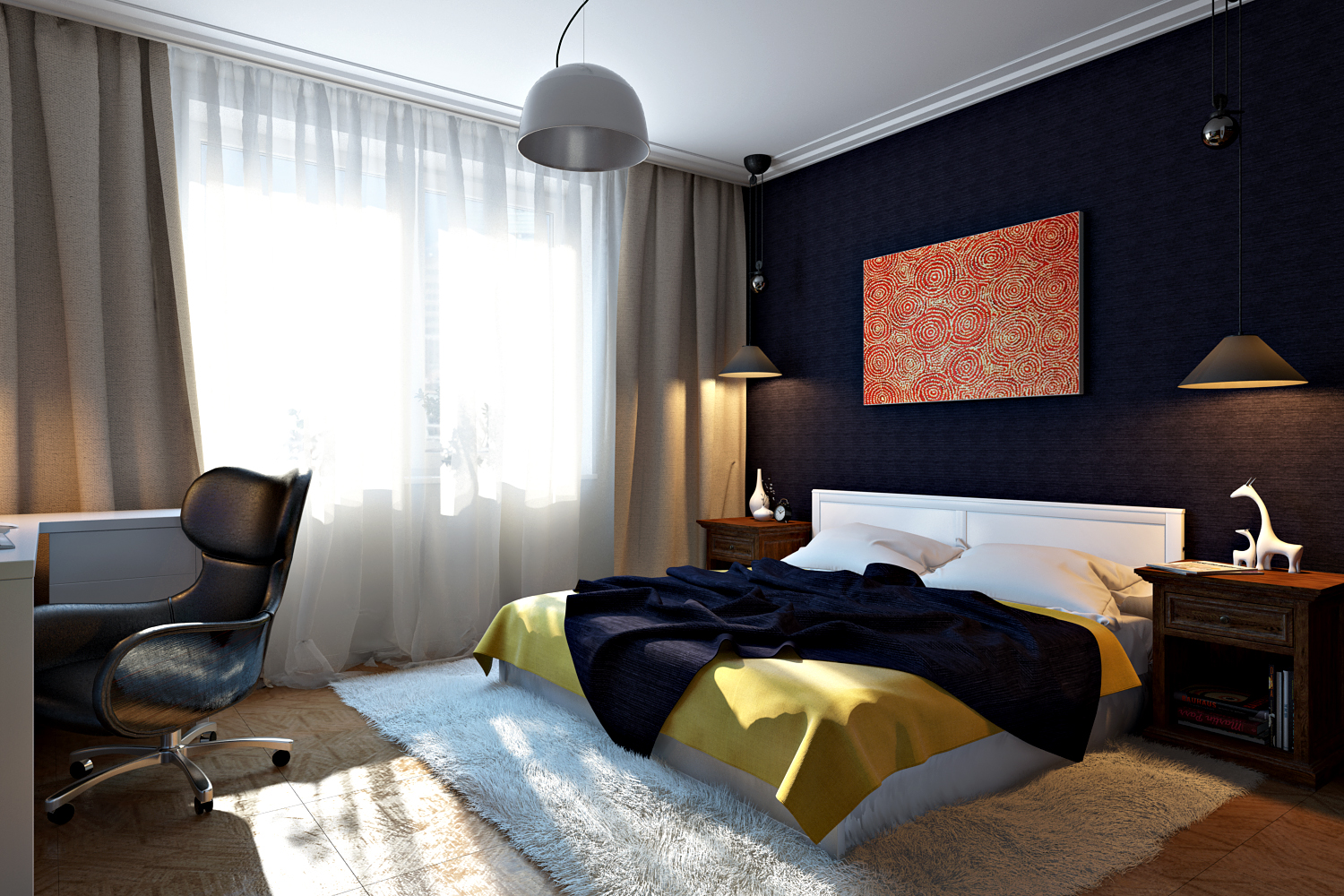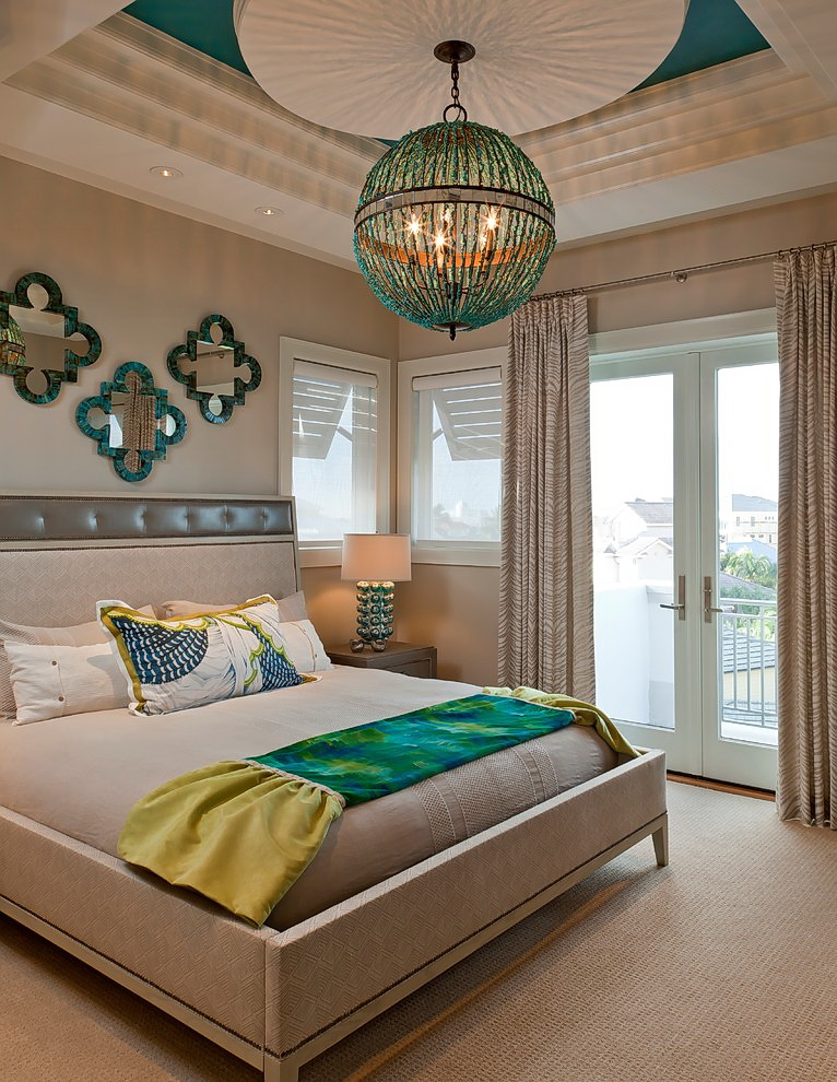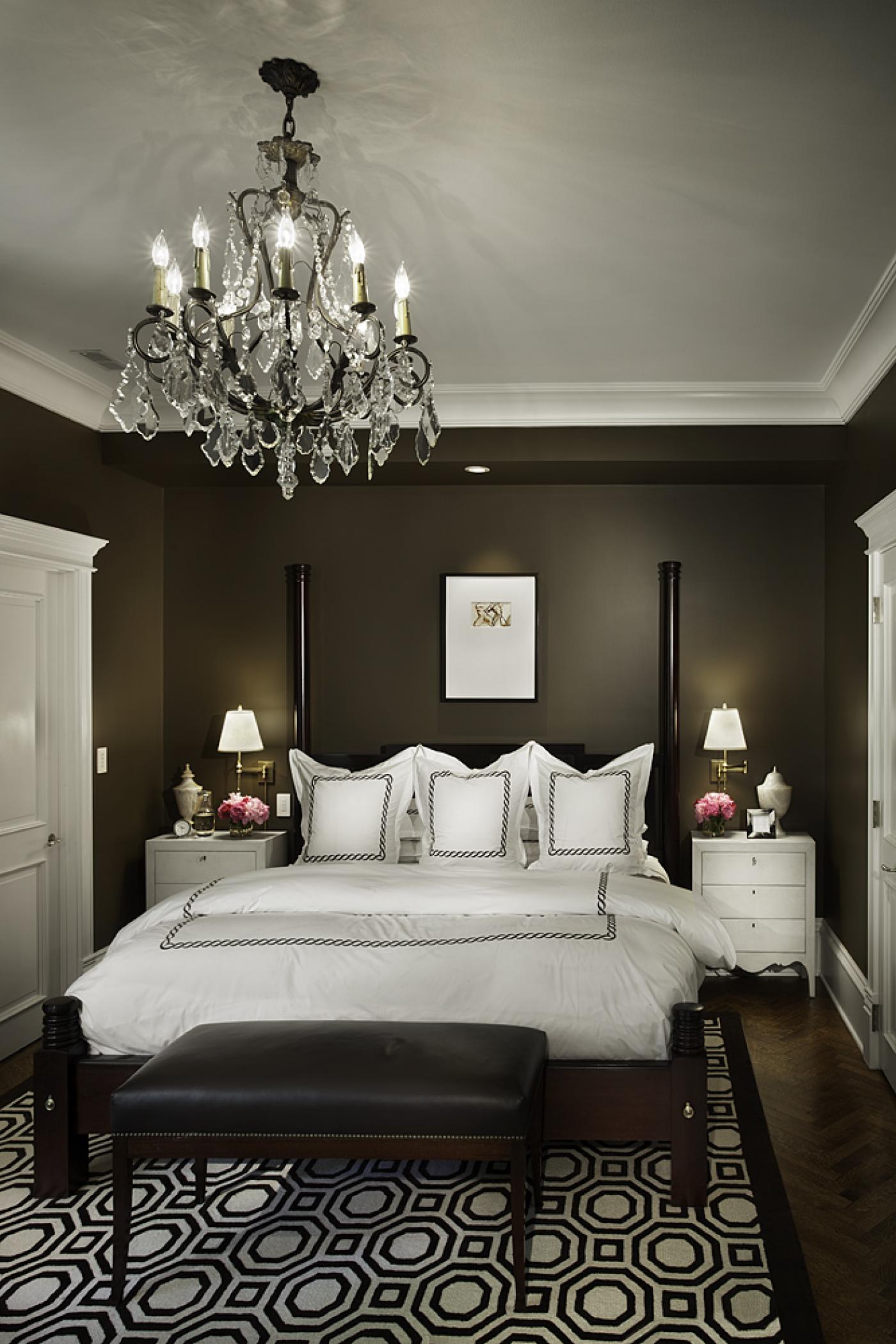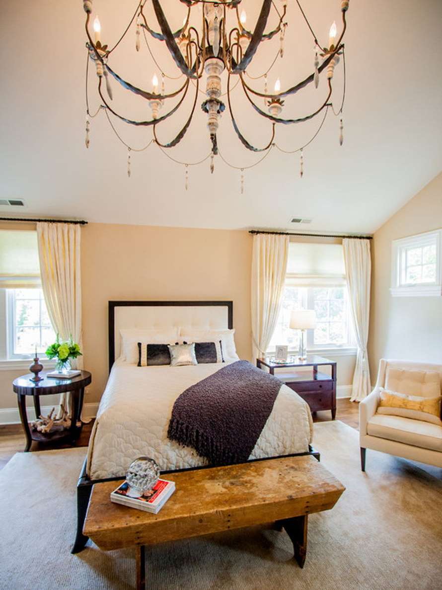 - localização as camas especialmente importante em salas retangulares ou salas de forma irregular. Designers oferecem para montar o lustre diretamente acima da cama. Para resolver este problema é necessário na fase de reparação do quarto. E está implícito que não se planeja mudar a localização da cama até o próximo reparo.