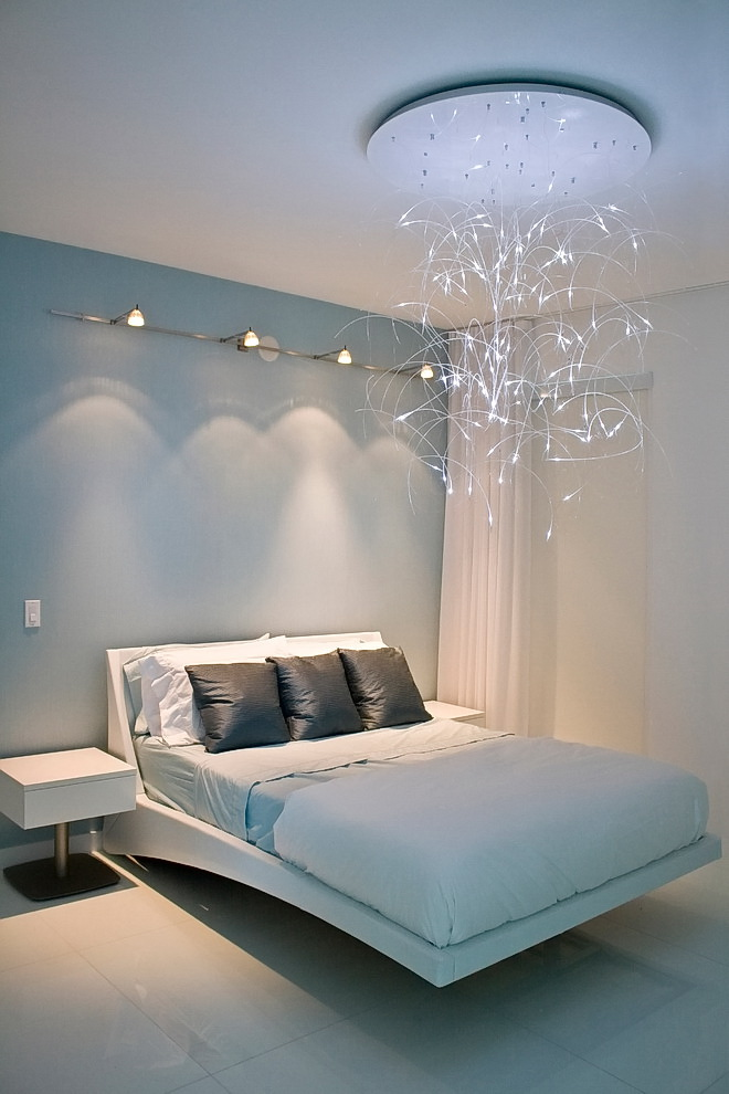 Muitas técnicas de design originalmente transformam a sala, tornando-a mais confortável e aconchegante. Lâmpadas de teto interessantes, uma inesperada combinação de lâmpadas e castiçais, colocação competente de lâmpadas. Ao escolher o candelabro no quarto não pode ser frívolo - porque cria um clima na sala e na atmosfera em que é fácil adormecer e relaxar confortavelmente.