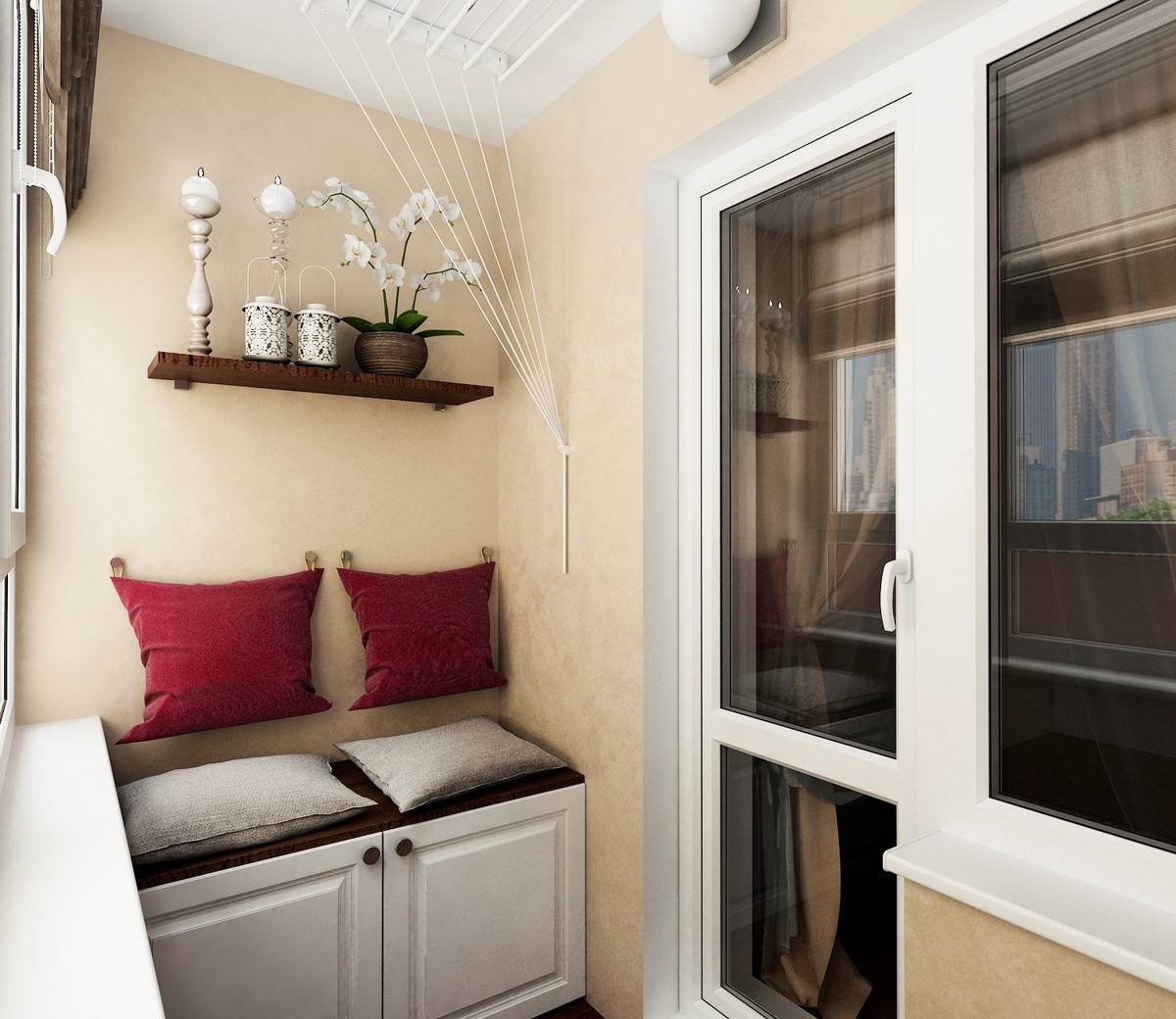 - Quanto menor o quarto - mais deve ser leve. Tons claros de cores, janelas constantemente abertas dão uma sensação de espaço, mesmo que a varanda em si seja pequena e não se transforme.