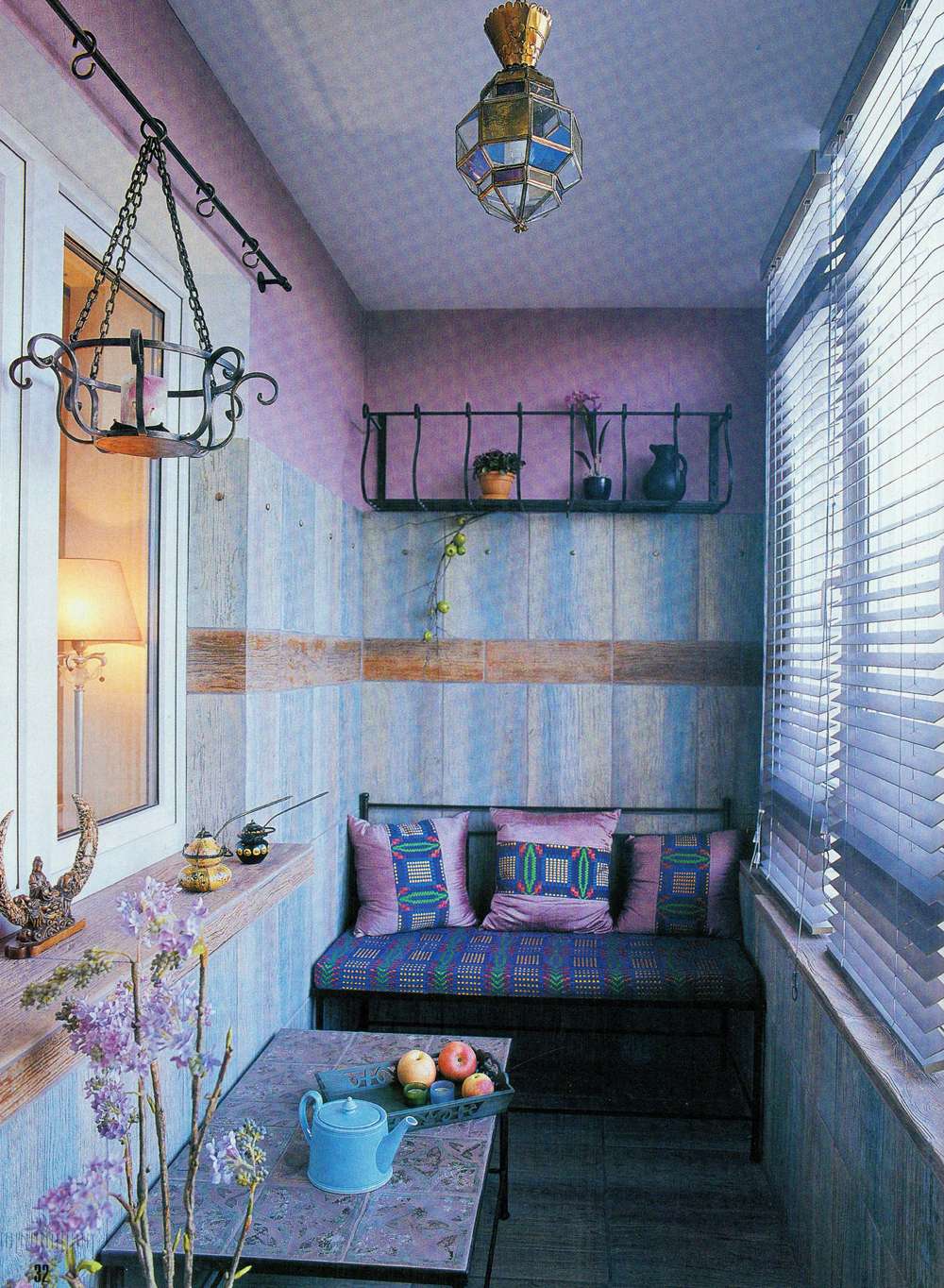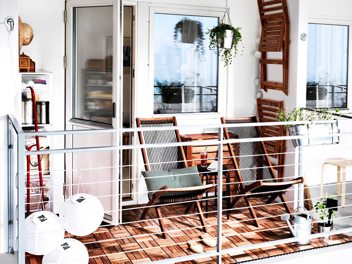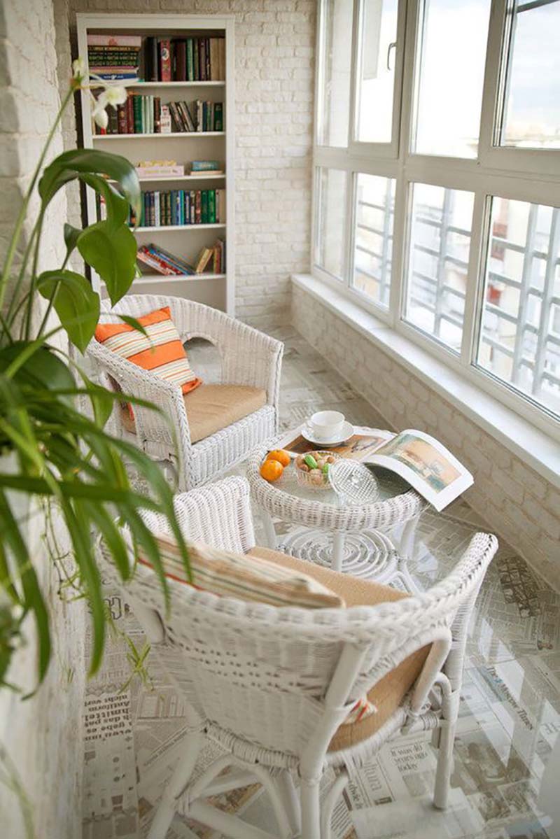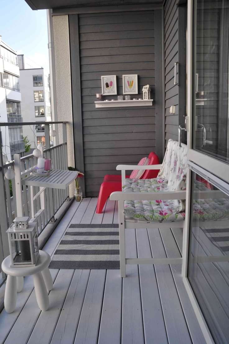 Você pode colocar no chão tapete, pendure uma panela no corrimão nos suportes e plante flores nela. Delícias estilísticas também não são particularmente necessárias - a única coisa que você precisa é levar móveis para casa durante o inverno.