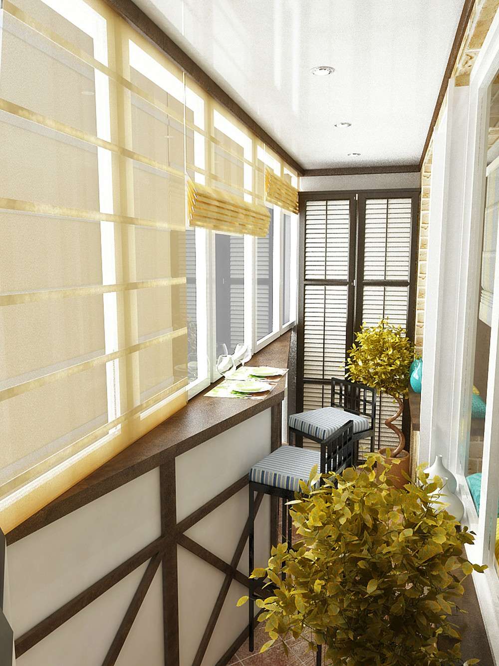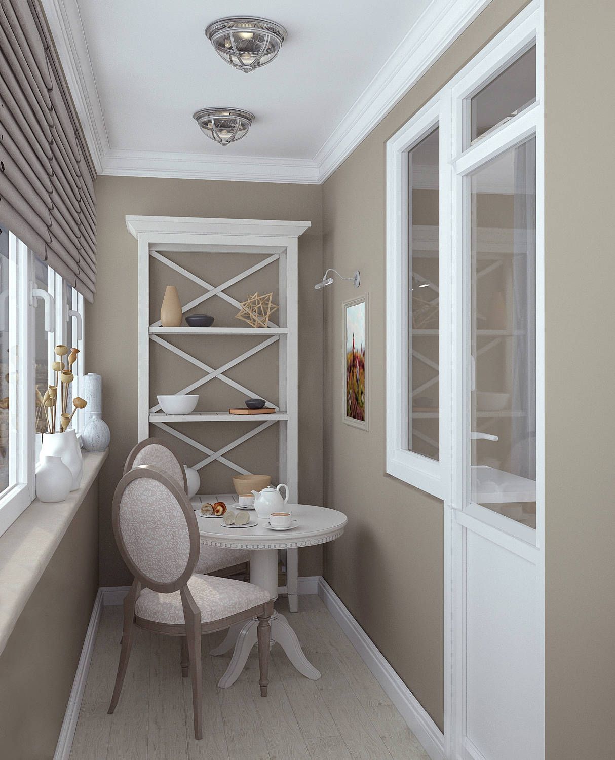 Uma varanda fechada, mesmo a menor, é uma sala separada que precisa de um design estilístico, soluções de design e uma abordagem criativa.