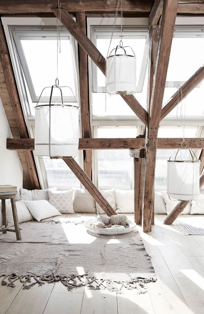 Para criar uma sala confortável no sótão, você precisa primeiro refiná-la: cubra o chão, pinte ou cole sobre as paredes, faça algo com o teto.
