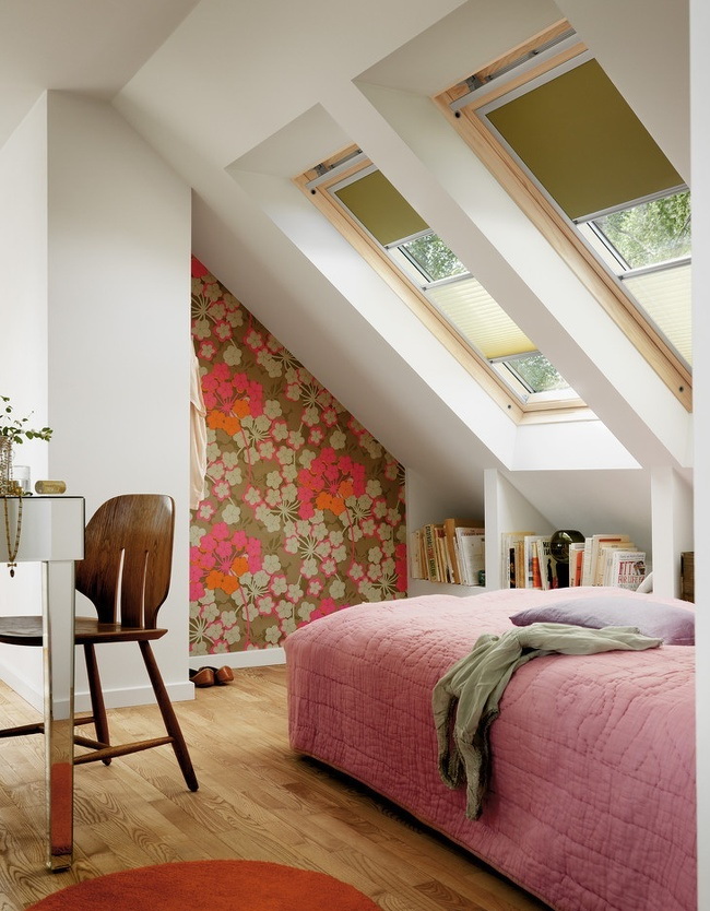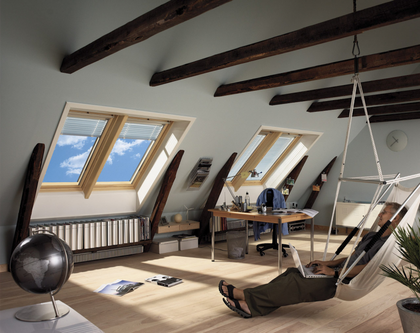 - Repetindo telhados biselados. Essas janelas parecem adequadas, sua capacidade é alta - no andar do sótão a maior parte do dia será leve e aconchegante. Não requer nenhuma manipulação especial antes da inserção.