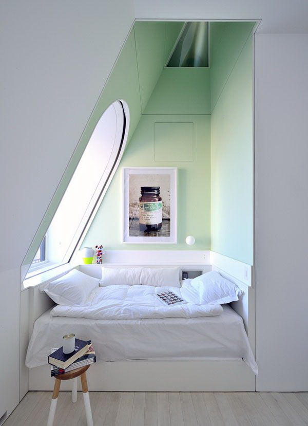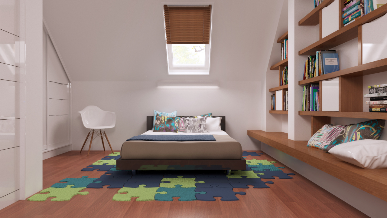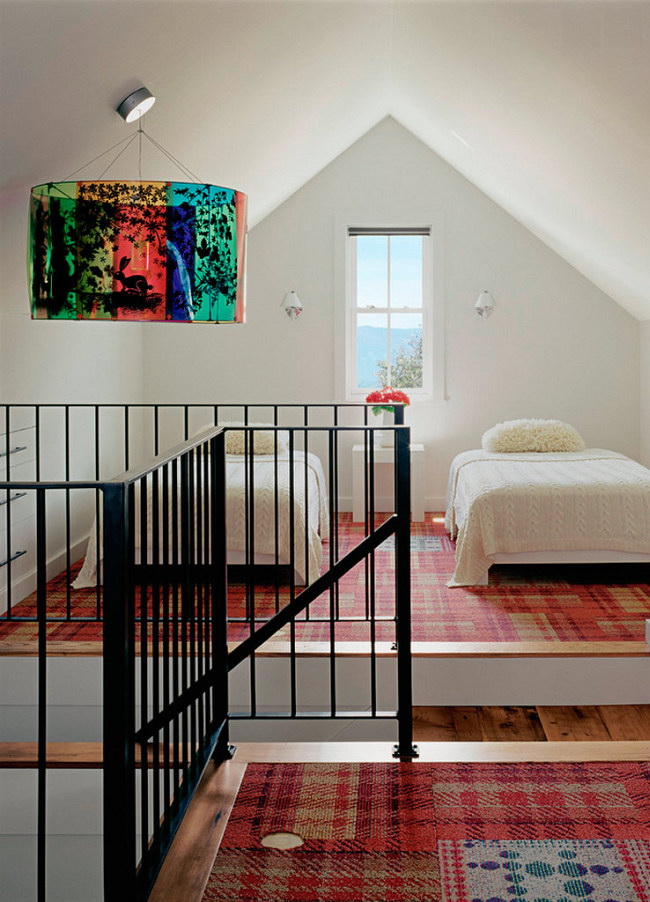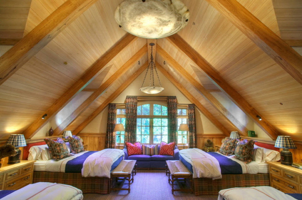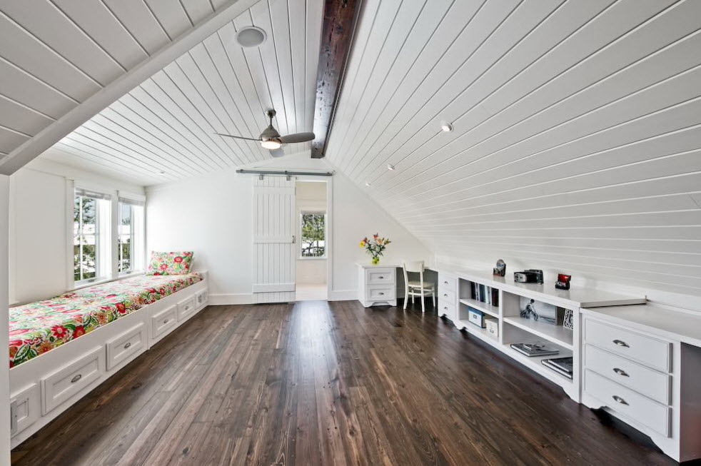 - Infantil. Para uma criança pequena, é inconveniente - nem todas as escadas do sótão permitem que você suba com o bebê em seus braços. Mas para um moleque de dez anos e mais - completamente. As crianças geralmente adoram a altura, é interessante brincar no sótão, é como uma casa na árvore, apenas na própria casa.É necessário apenas garantir que é impossível cair pelas escadas e os móveis não têm cantos afiados.