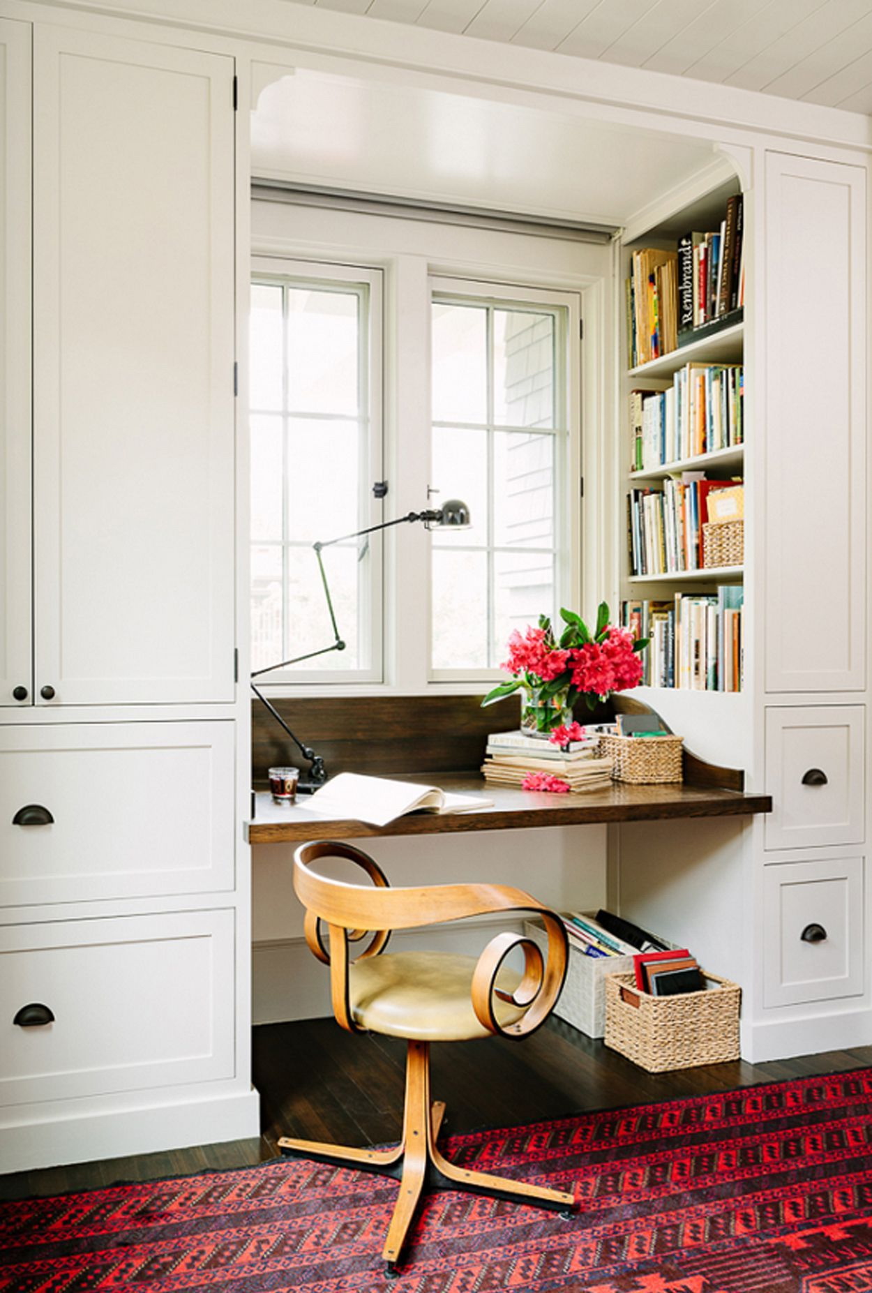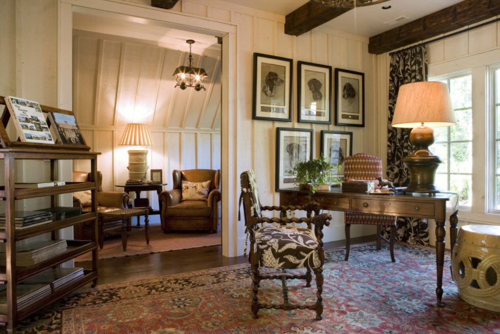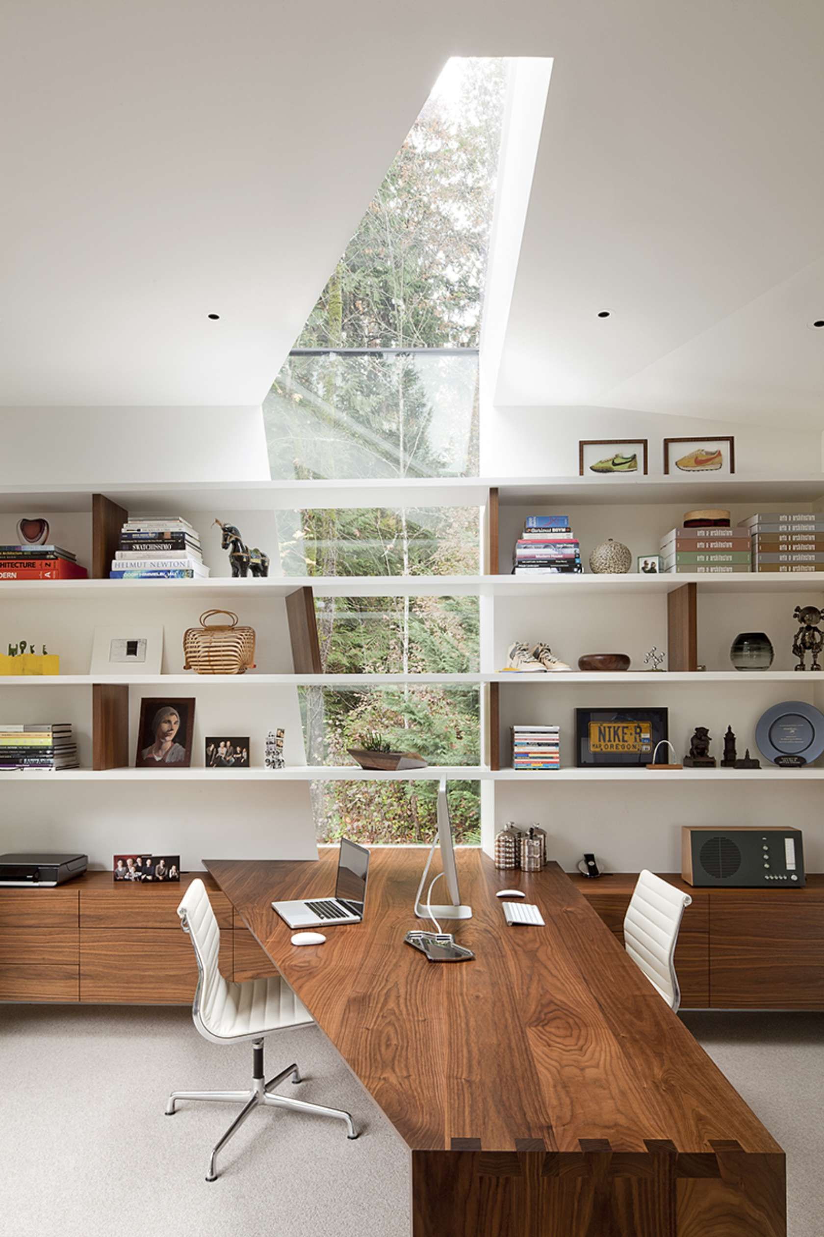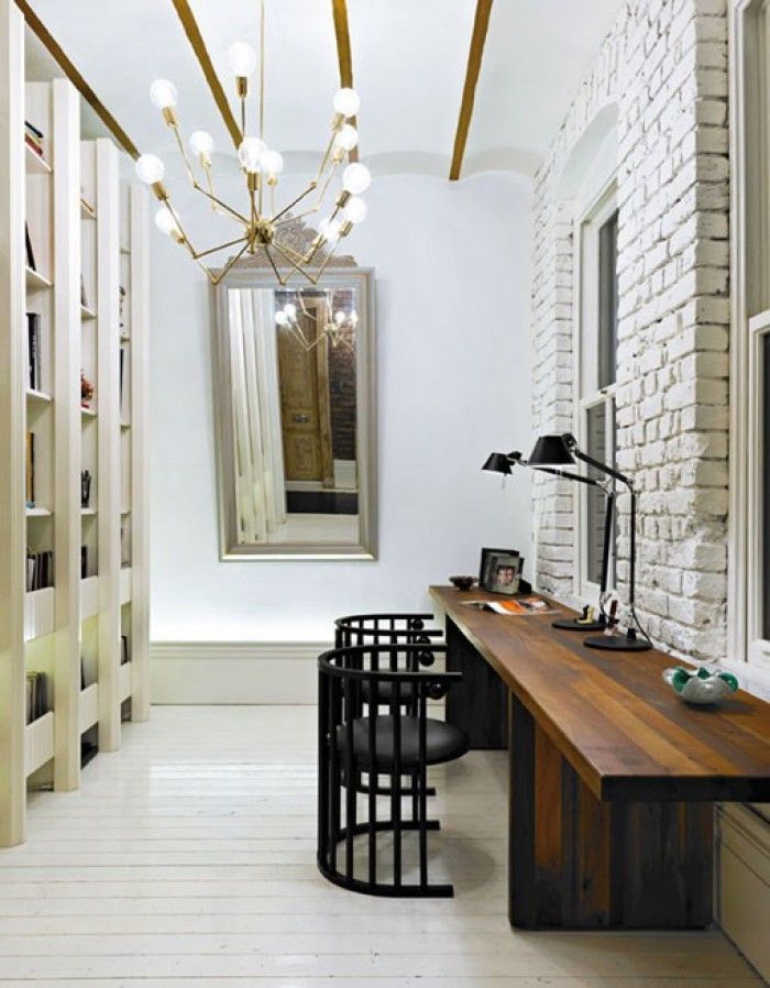 - Gabinete. Se você não gosta de ser perturbado durante o trabalho, um escritório no sótão é uma ótima solução. Coloque a mesa na janela, conduza eletricidade e desfrute da sua privacidade - a casa será difícil de chegar até você e eles pensarão dez vezes antes de você se distrair.
