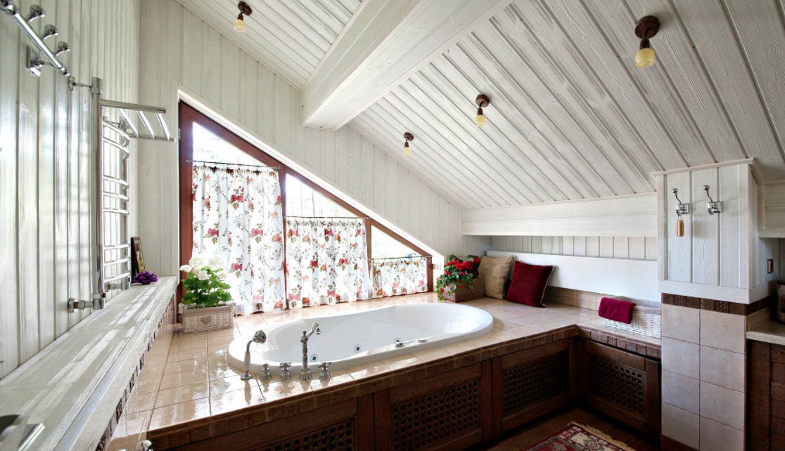 - teto de uma forma específica - como regra, chanfrada de um lado ou de ambos, e somente em casos raros é plana como em uma sala normal;