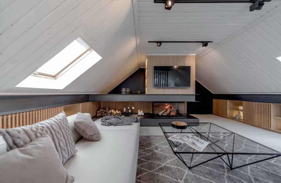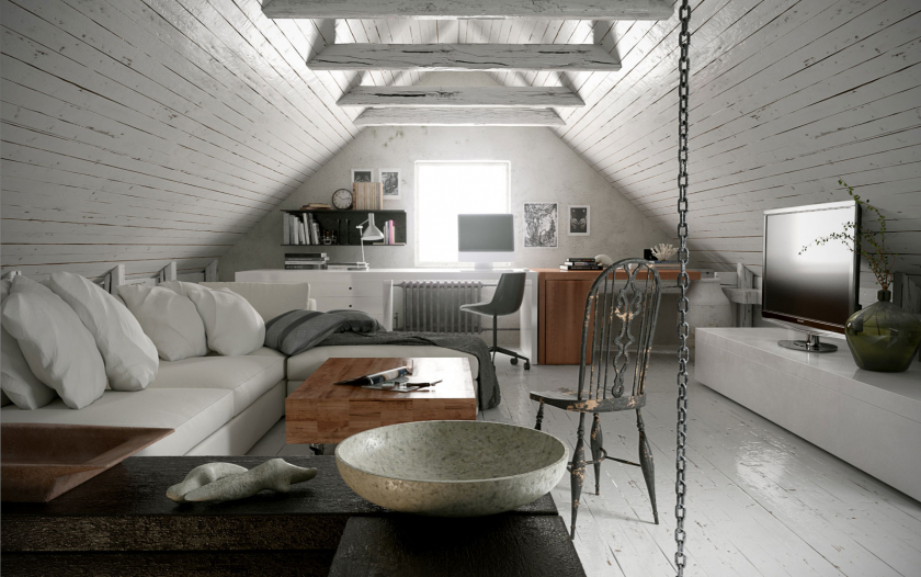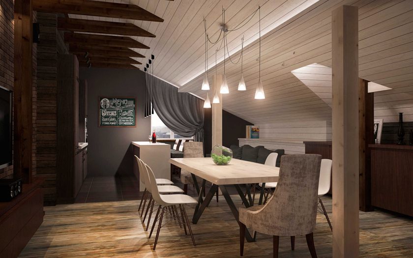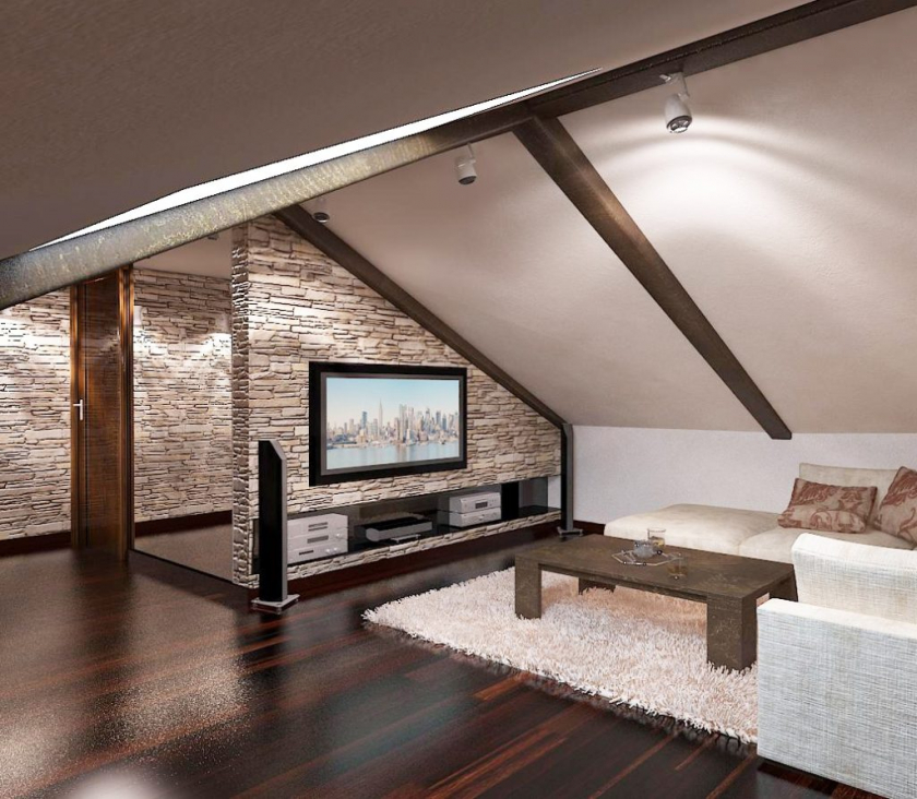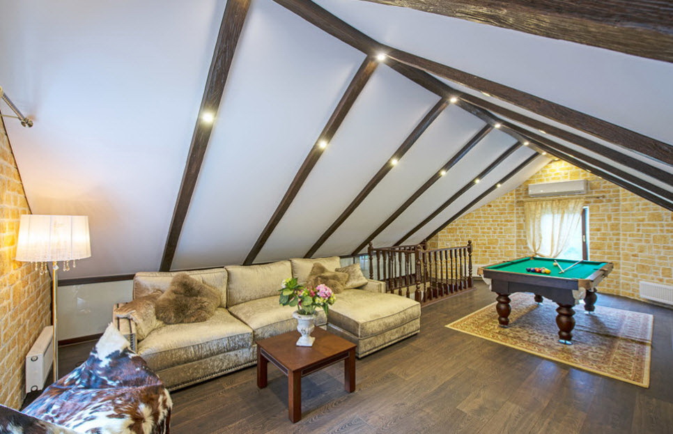 Sala de bilhar, home cinema, sala de armazenamento para espaços em branco - no sótão pode ser organizado literalmente qualquer coisa, até mesmo uma estufa ou desenvolvimento de espaço para fotografias.