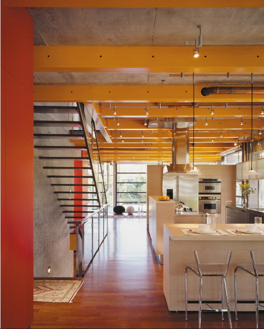 Para equilibrar a cor laranja, pinte o teto com tinta branca ou próximo a ele em tom.
