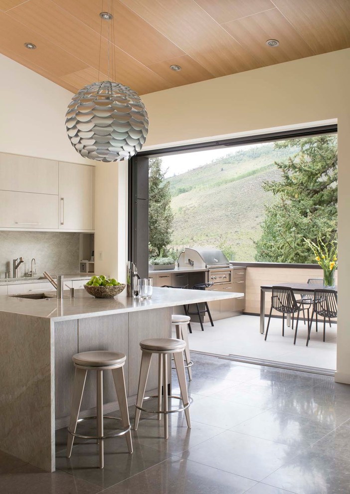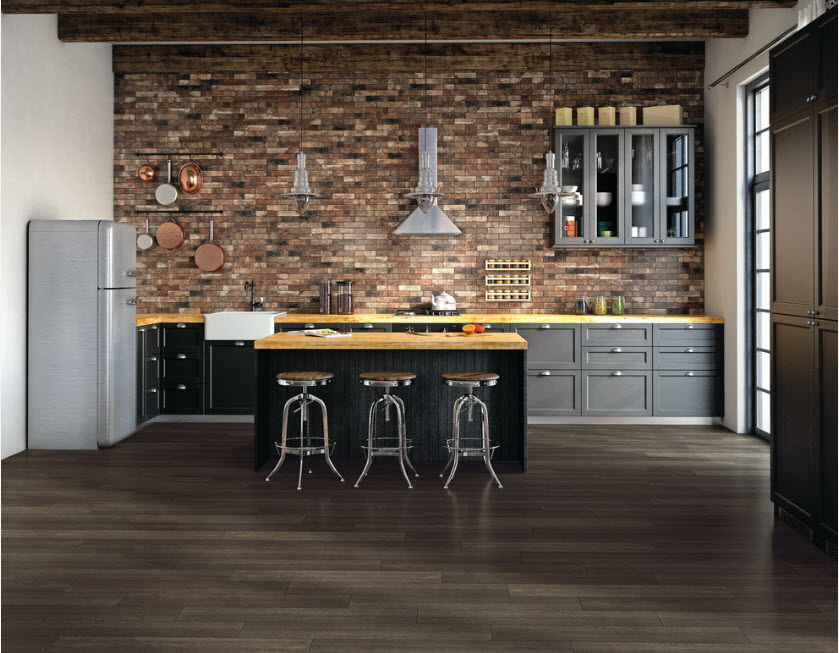 A textura é o segredo para a cozinha marrom designer.