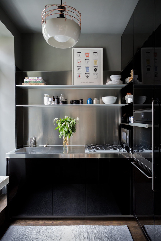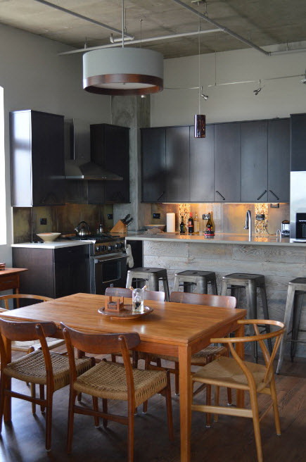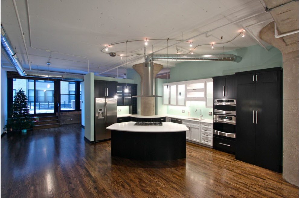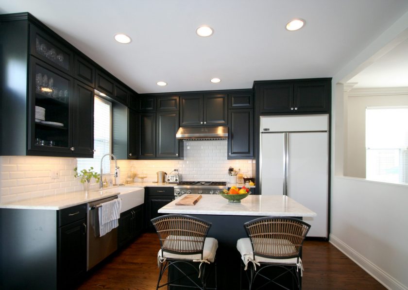 Cores pretas no design - tendência de moda.Os quartos brancos são coisa do passado, chegou a hora de tentar uma solução cardinal - pintar as paredes em uma cor escura. Para que a cozinha não se torne uma fonte de mau humor, seguimos os requisitos: