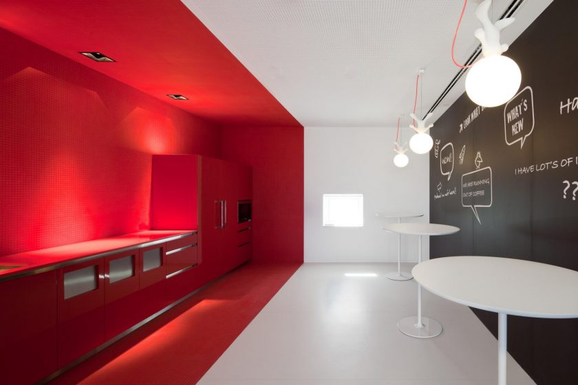 O vermelho deve estar em harmonia com o estilo geral. Em alta tecnologia e estilo moderno, combinamos vermelho com prata, vermelho com branco ou preto.