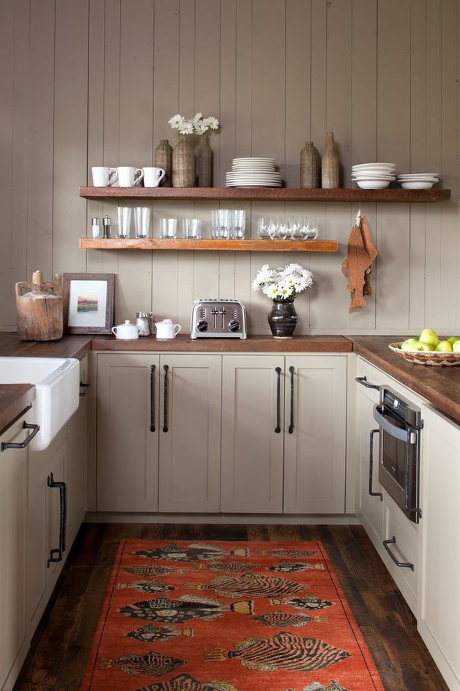 - Usamos os mesmos materiais para finalizar o avental e as telhas de cerâmica marrons, madeira ou pedra. Quanto mais escuro o material, mais perceptível será uma gota de gordura e migalhas.