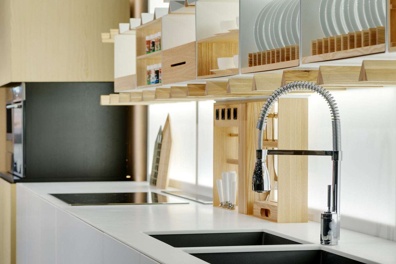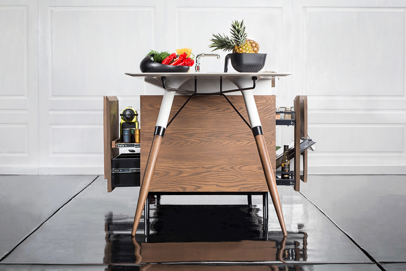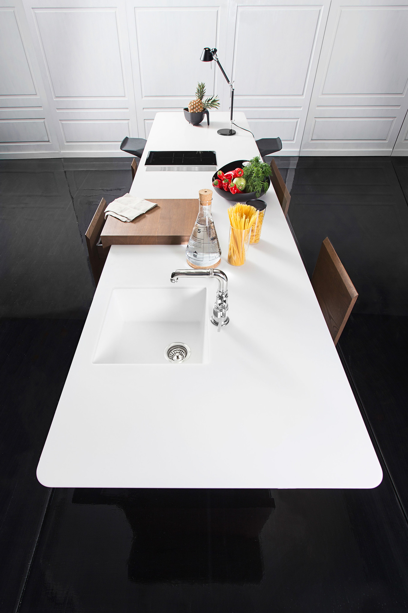 - Combina-se com uma pia, eletrodomésticos e tampo de mesa com fachadas cromadas ou de aço;