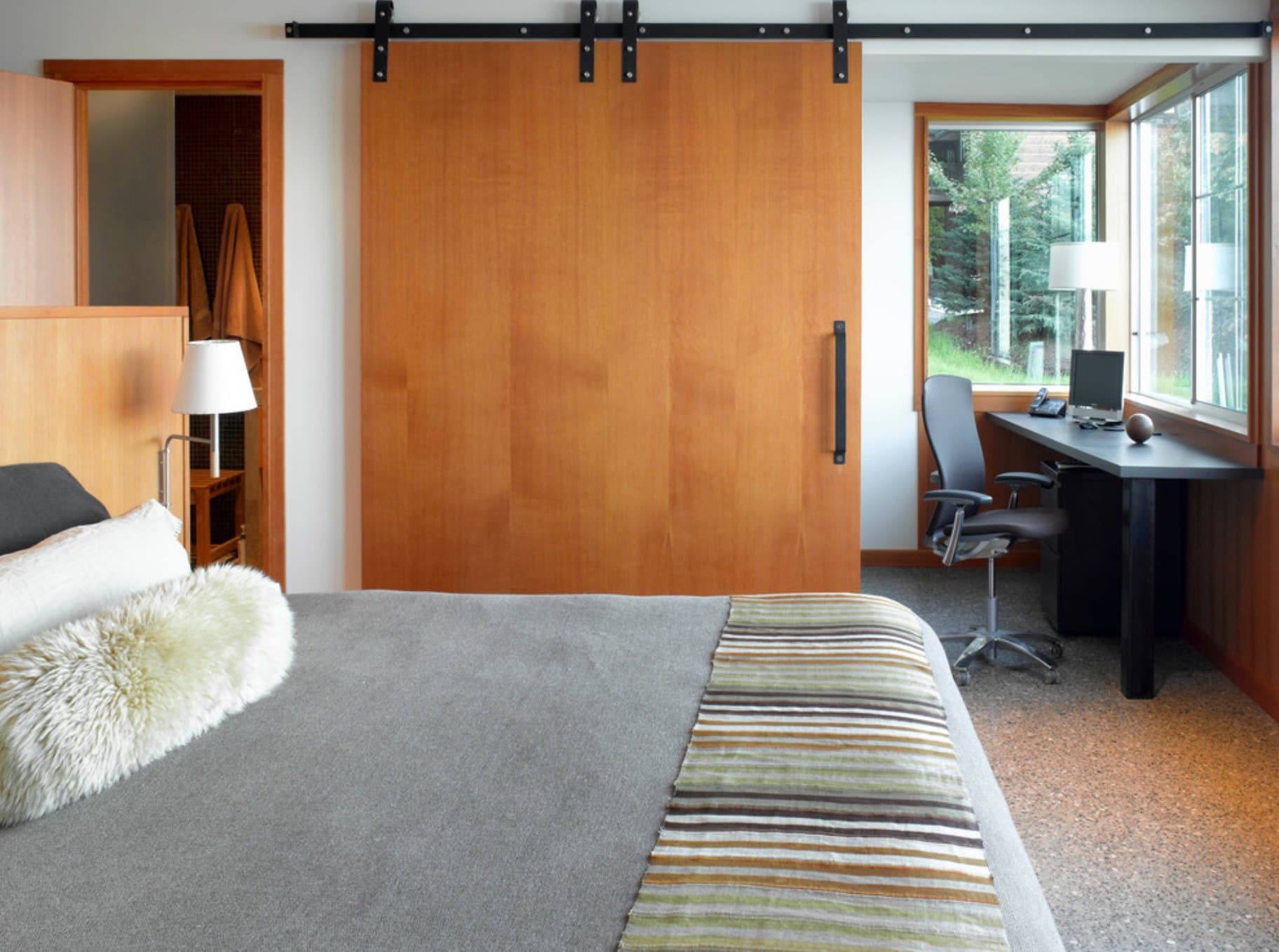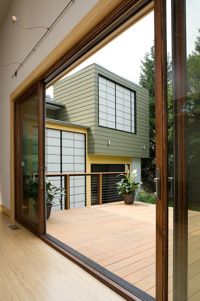 - Estética. A maioria das portas do mundo é articulada, por isso as portas de correr parecem especialmente originais. Com a ajuda deles, você pode deixar a sala visualmente mais espaçosa e mais clara, dando a ela um interior japonês minimalista.
