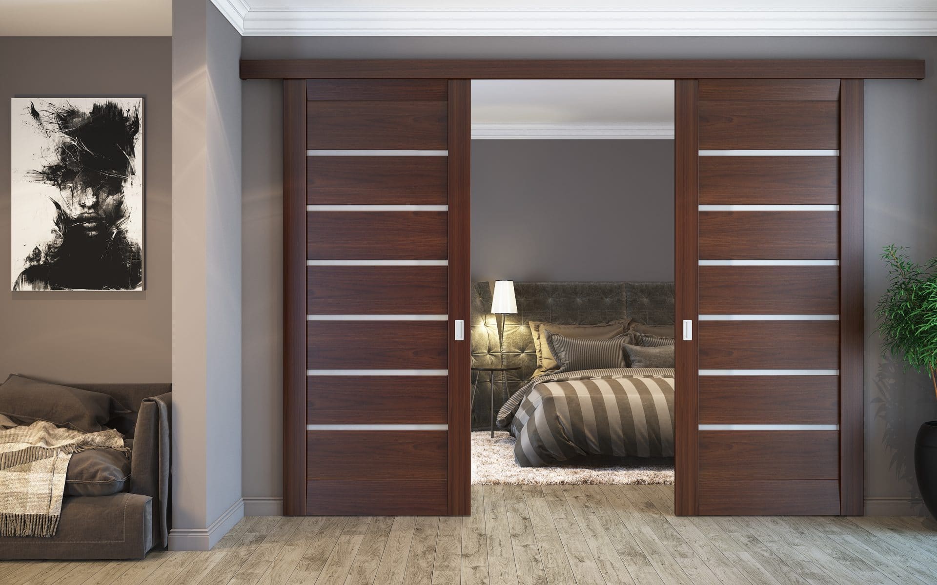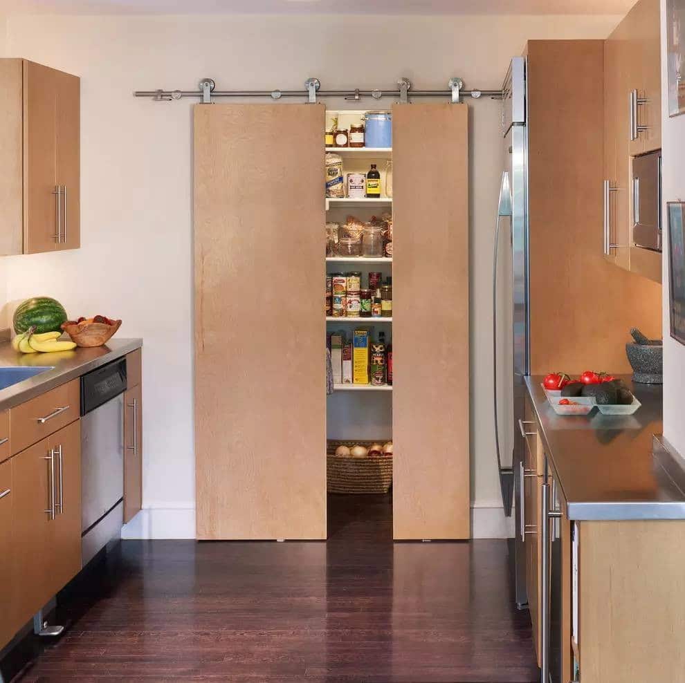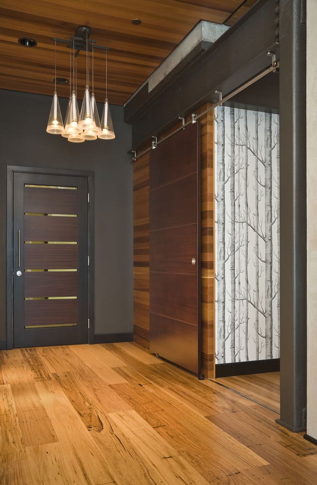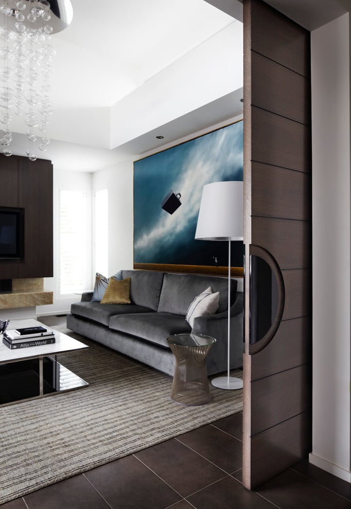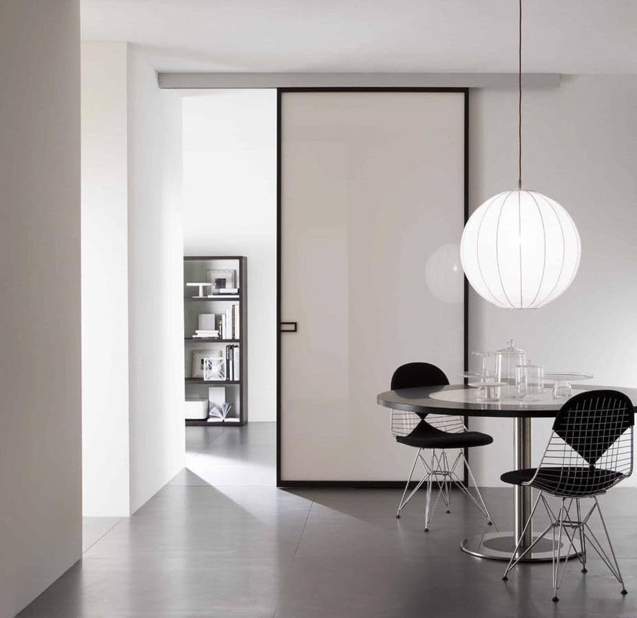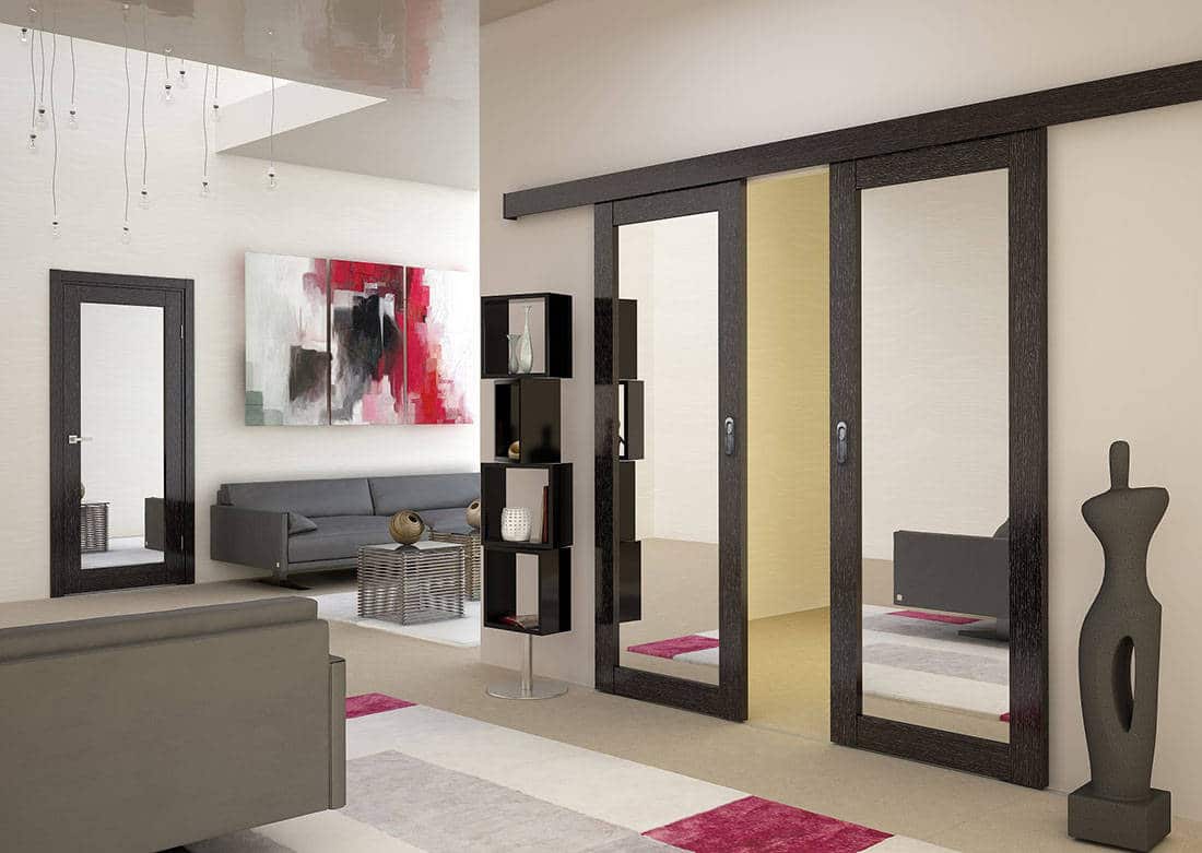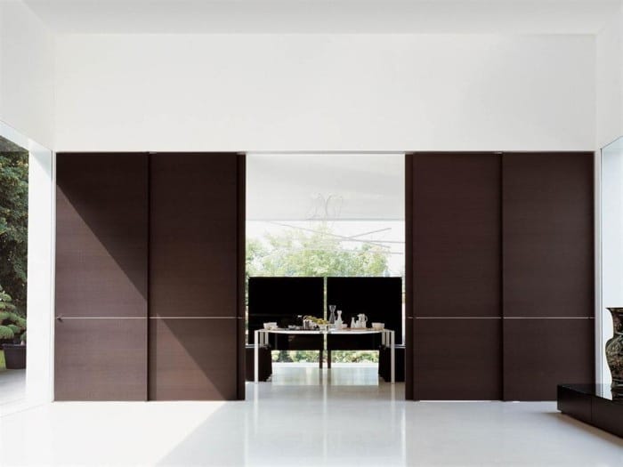 Portas deslizantes, também conhecidas como “coupes”, são usadas em apartamentos de pequenas cidades, pois permitem economias significativas de espaço. Bem adequado para um estilo minimalista, para um interior moderno estressado ou para tentar recriar um estilo tradicional japonês no seu apartamento.