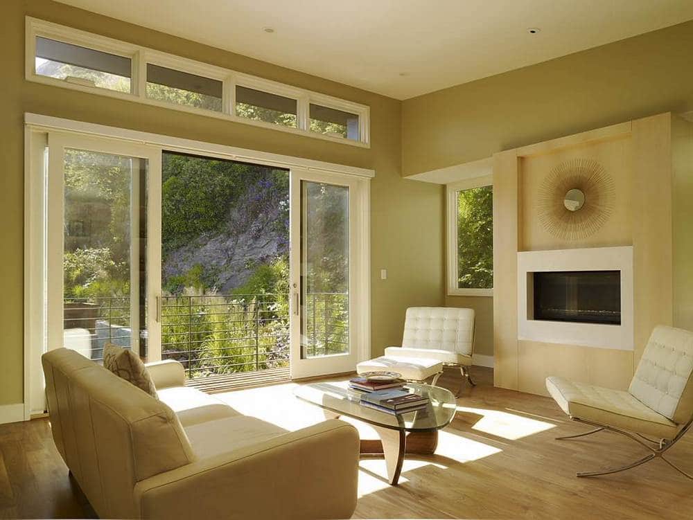 - Largura de banda A luz penetra facilmente através do vidro. Se você quiser deixar a sala visualmente espaçosa e iluminada, a porta de vidro serve.